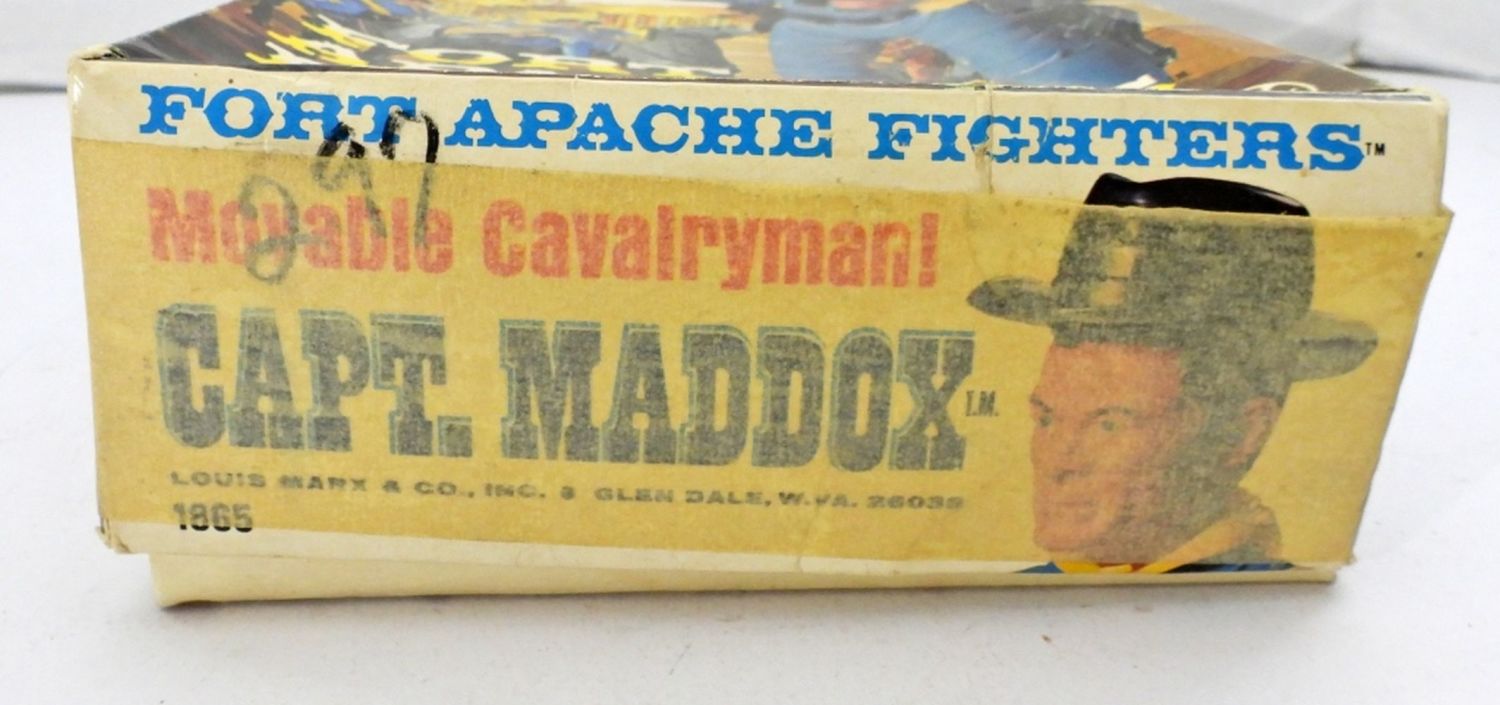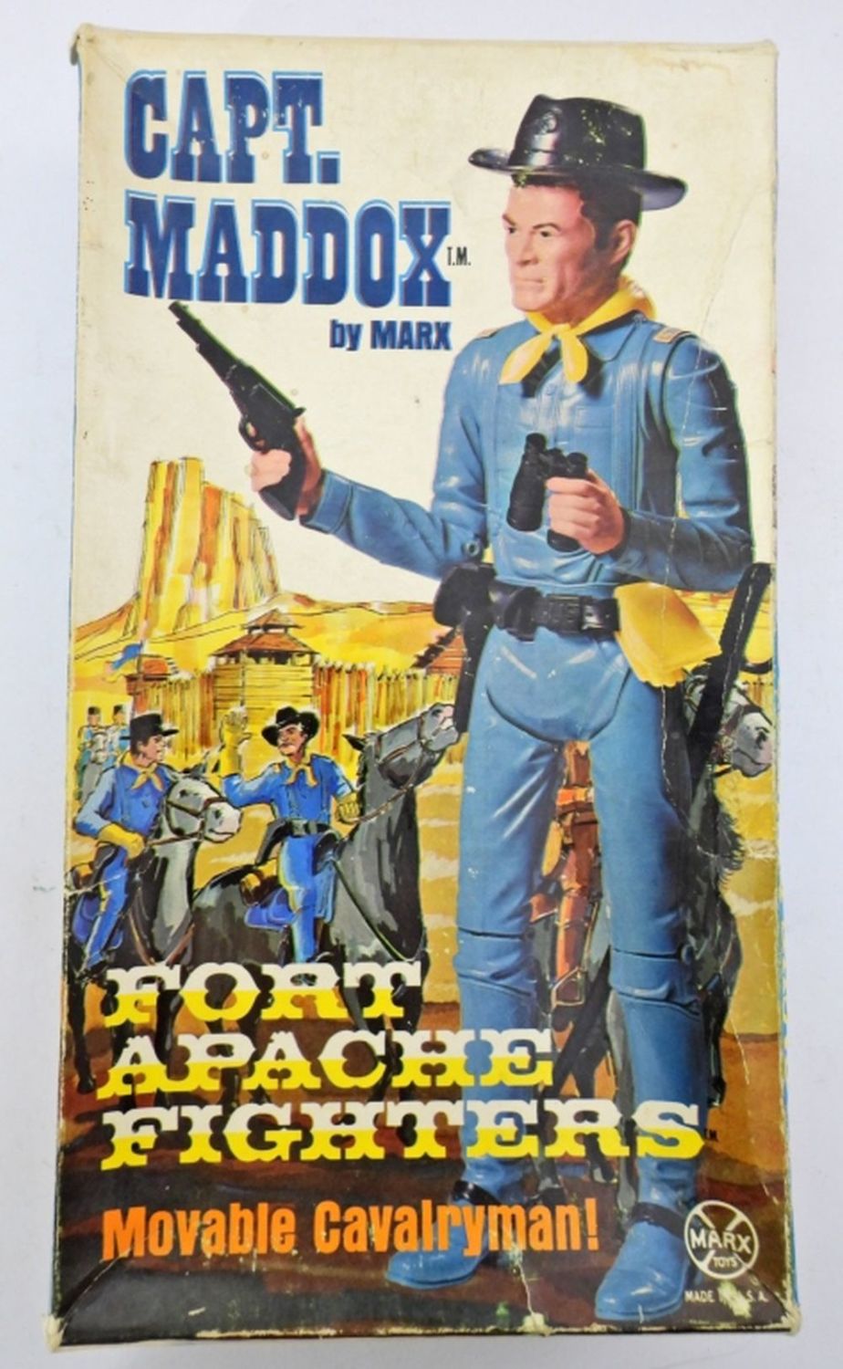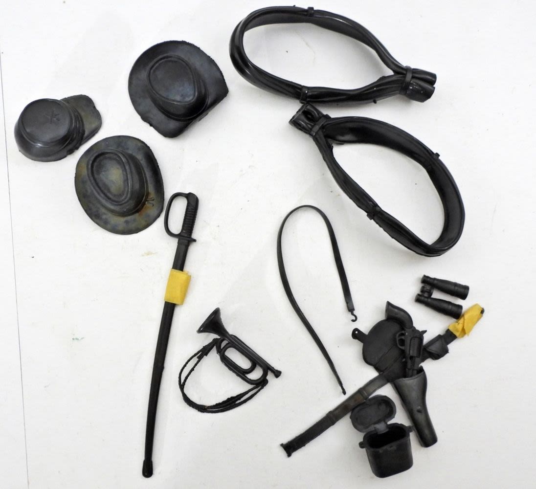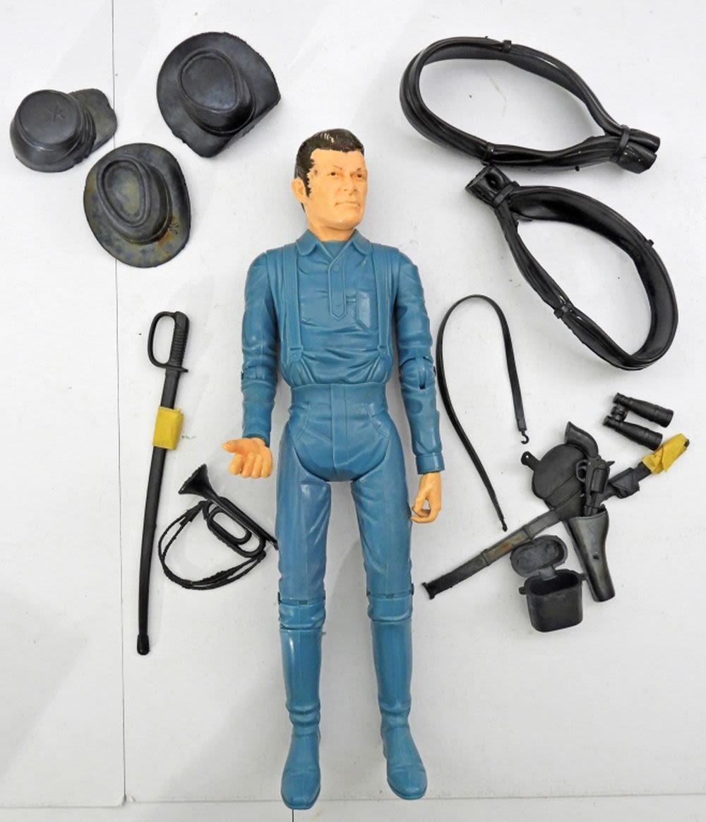 MOVABLE CAVALRYMAN, NOT ALL PARTS ARE WITH THE DOLL, 11IN LONG FOR THE DOLL, SOME WEAR AND TEAR ON BOX