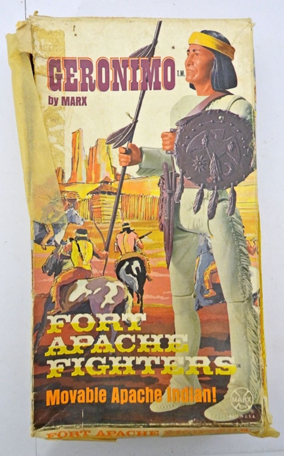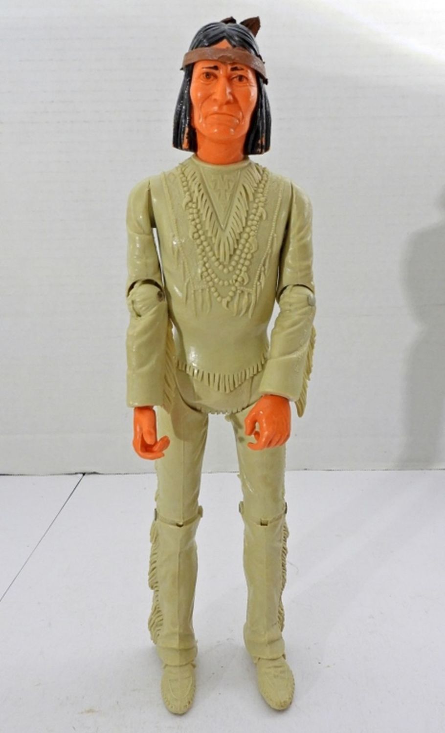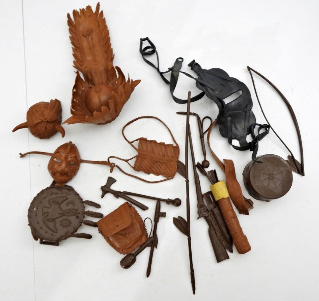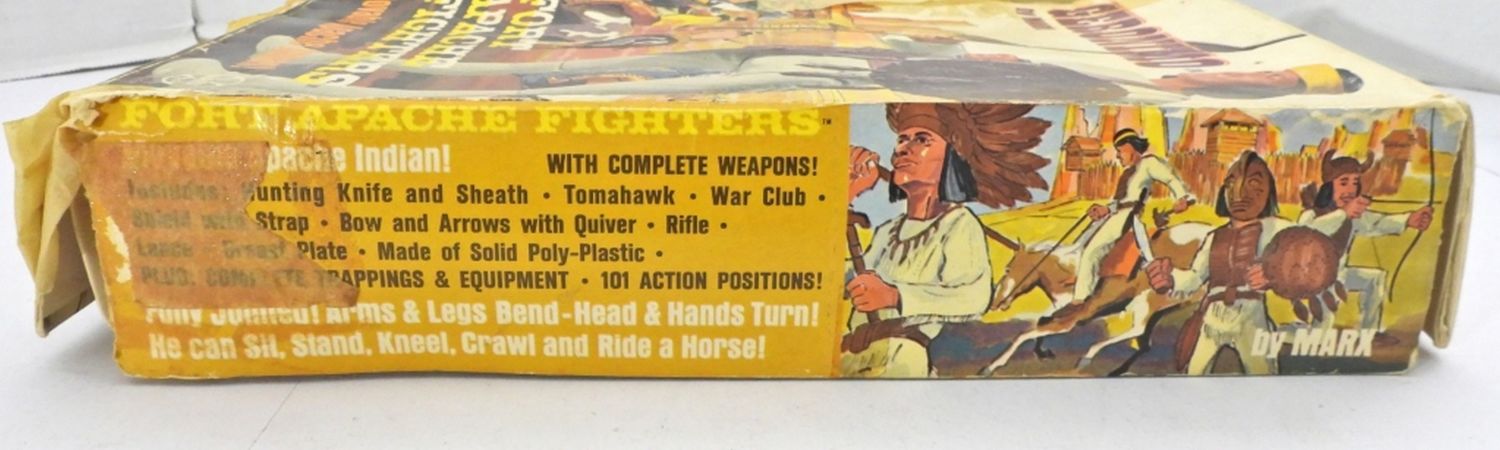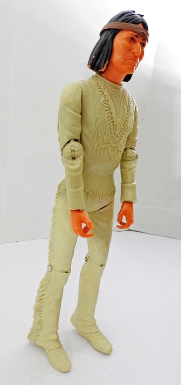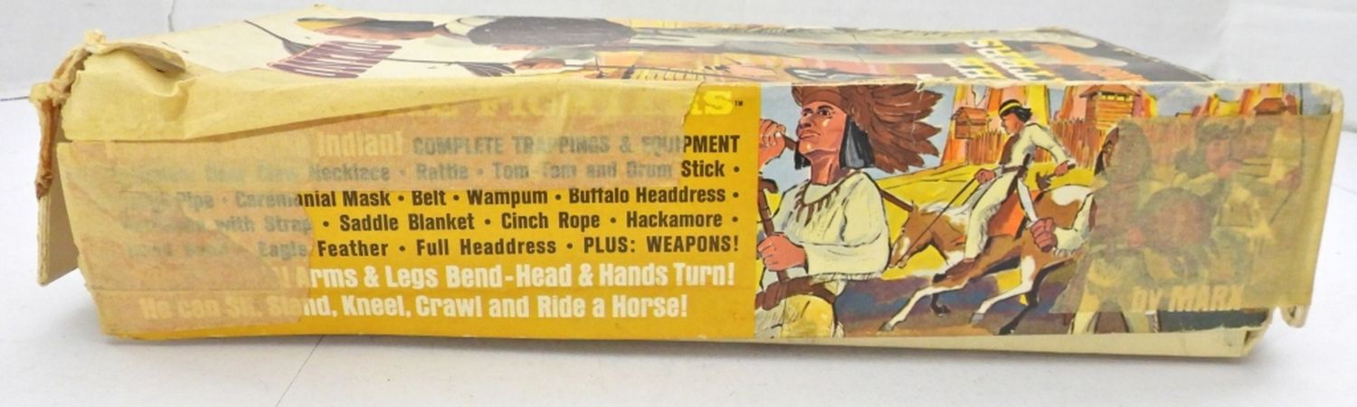 MOVABLE APACHE INDIAN, NOT ALL PARTS ARE WITH THE DOLL, 11IN LONG FOR THE DOLL, BOX IS VERY DAMAGED