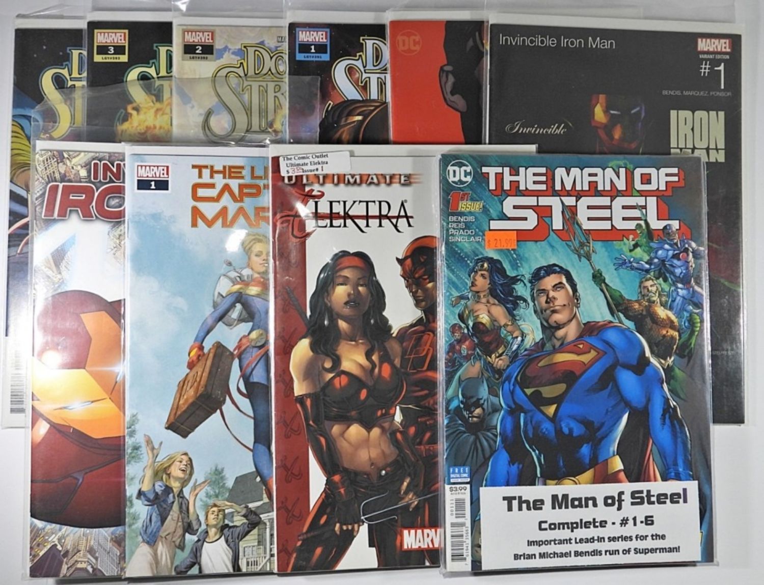 INCLUDING THE MAN OF STEEL COMPLETE #1-6, ULTIMATE ELEKTRA, INVINCIBLE IRON MAN, SUPERMAN, DOCTOR STRANGE, BATMAN, IDENTITY CRISIS, X-MEN, & MORE! SOME SLEEVED TOGETHER.