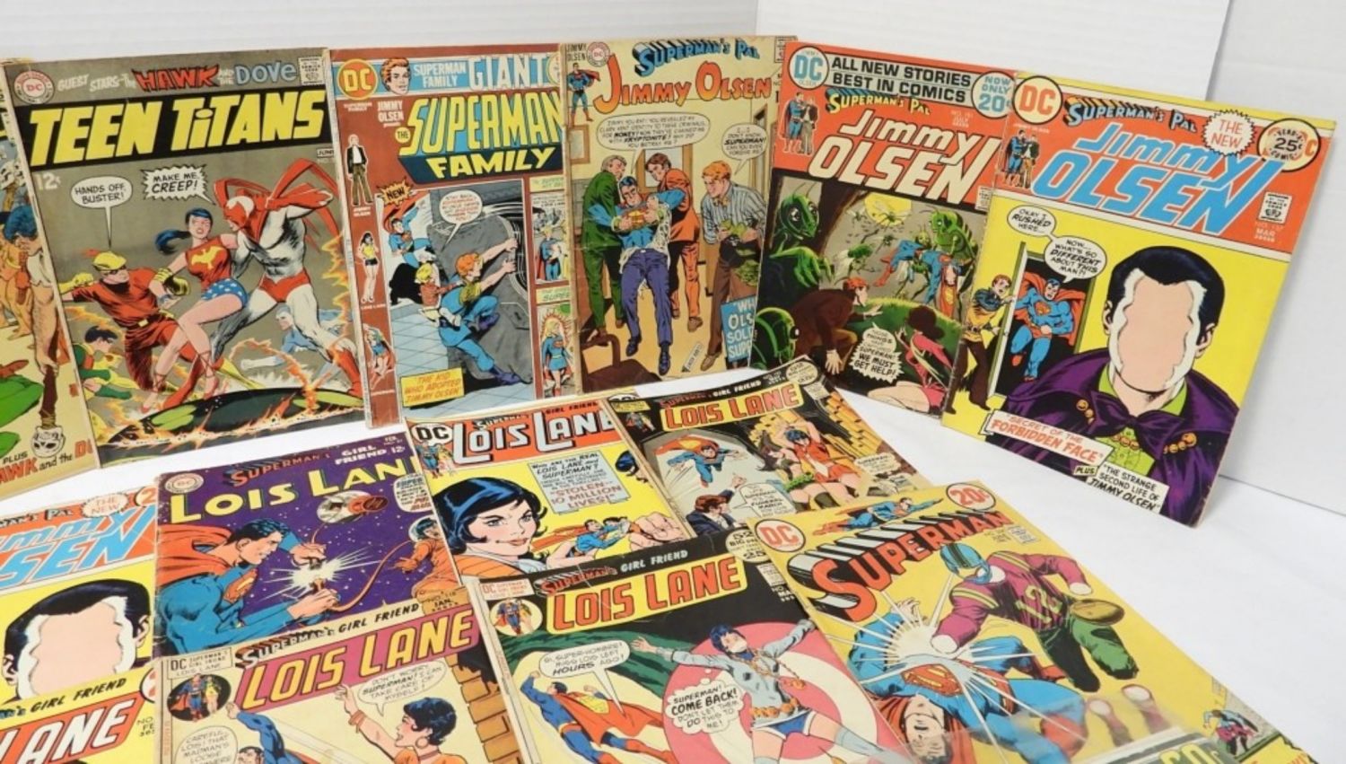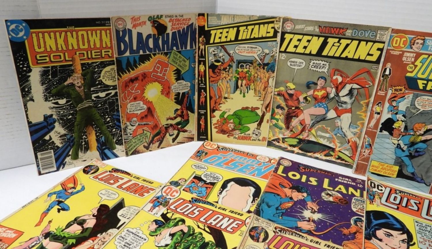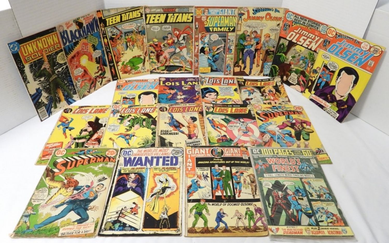 INCLUDES SUPERMAN, SUPERMAN’S GIRL FRIEND LOIS LANE, SUPERMAN’S PAL JIMMY OLSEN, SUPERMAN FAMILY, BLACKHAWK, THE UNKNOWN SOLDIER, THE WORLD’S MOST DANGEROUS VILLAINS!, BATMAN AND BATMAN WORLD’S FINEST
