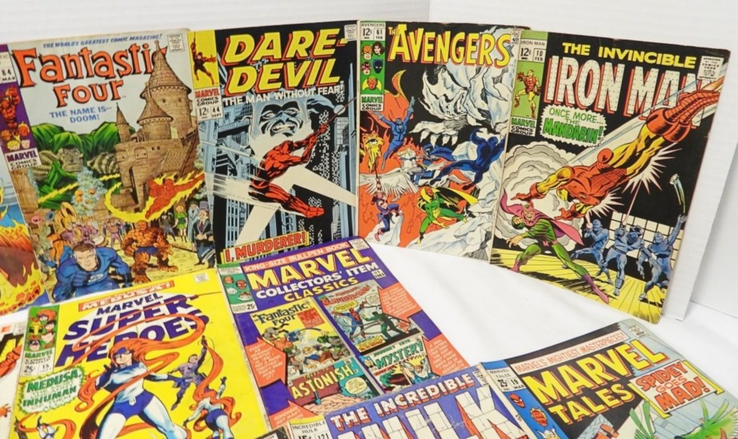 SOME ISSUES INCLUDE: MARVEL TALES, THE INCREDIBLE HULK, SUPERMAN’S PAL JIMMY OLSEN, ACTION COMICS, IRON MAN, THE AVENGERS, DARE-DEVIL AND MORE