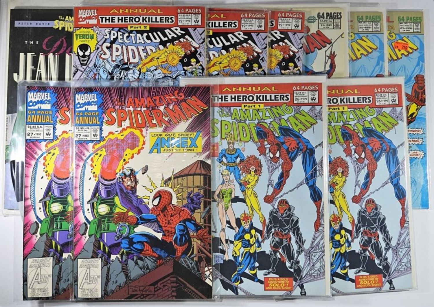 THE AMAZING SPIDER-MAN: THE DEATH OF JEAN DEWOLFF, (3) THE SPECTACULAR SPIDER-MAN ANNUAL #12; THE AMAZING SPIDERMAN ANNUAL #23, (2) #25, (2) #26, & (2) #27