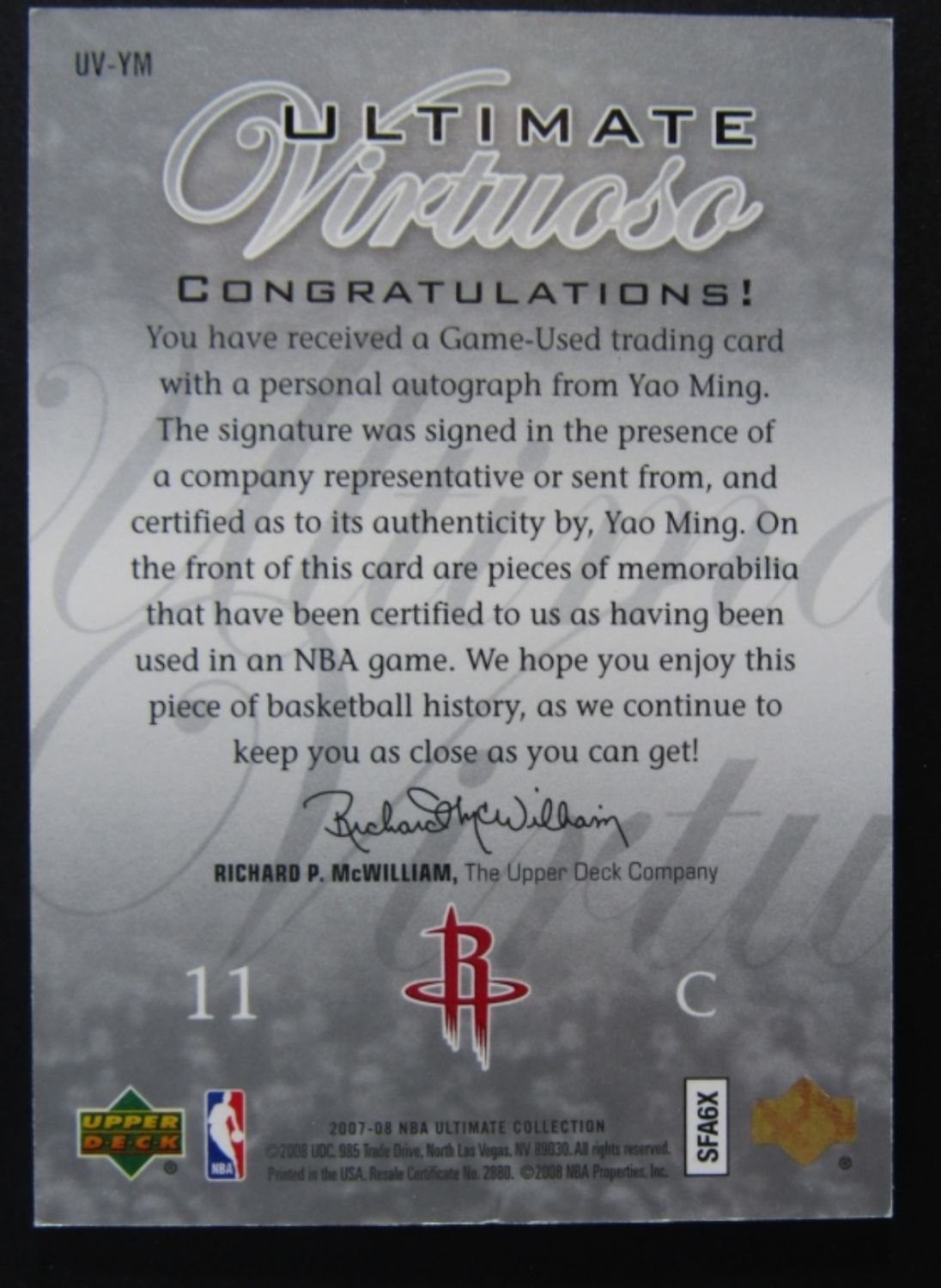 SIGNED JERSEY CARD GAME USED