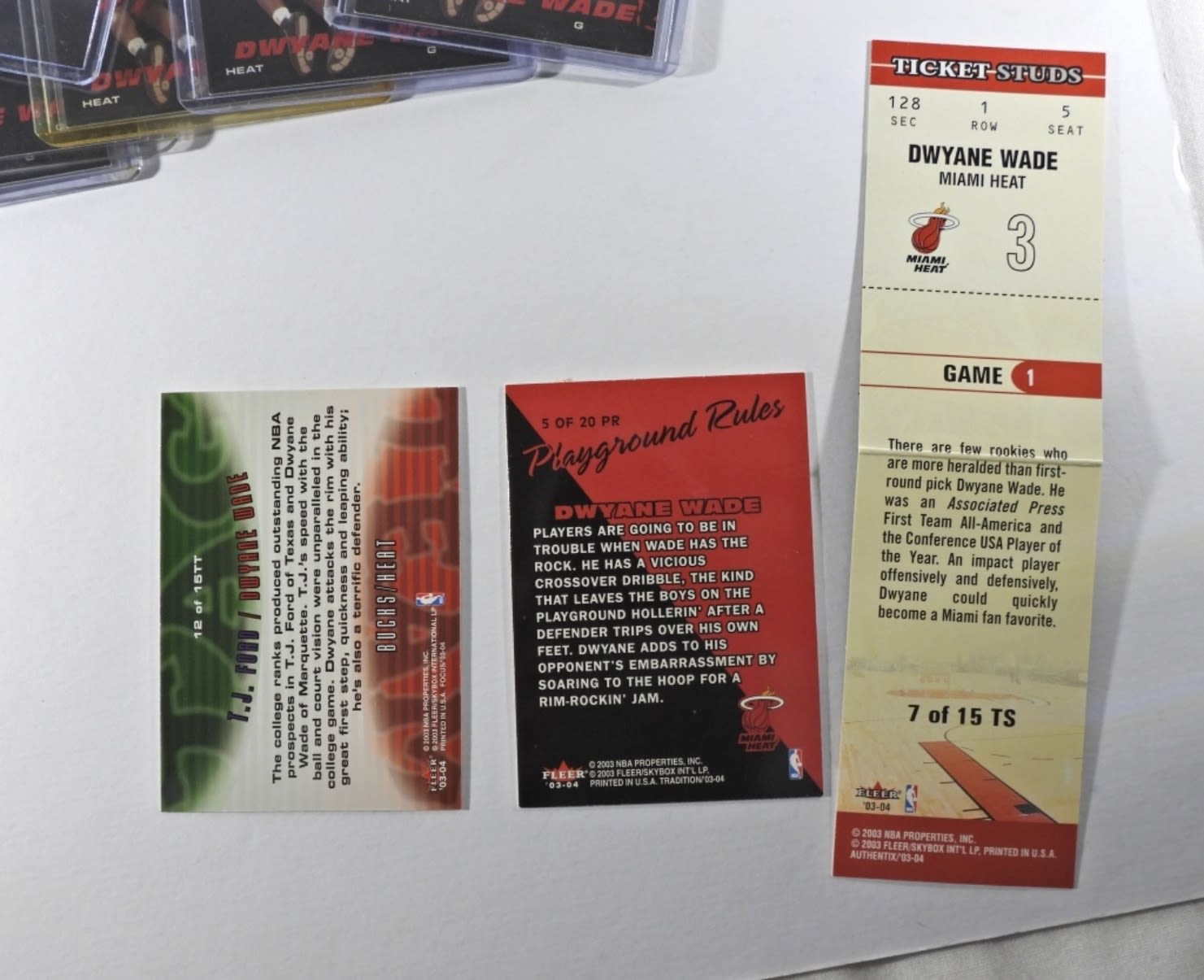 (9) 2003 FLEER TICKET STUDS, (10) 2003 FLEER PLAYGROUND RULES, (5) 2003 FLEER FOCUS