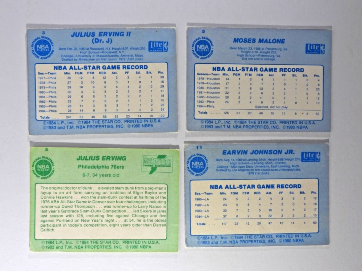 #11 Magic Johnson, #5 Moses Malone, #3 Erving & (1) 85 STAR GATORADE #5 JULIUS ERVING – VG -VGEX
