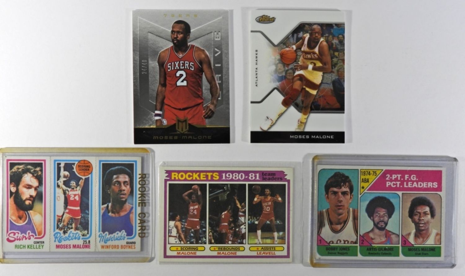1980-91 TOPPS KELLEY/MALONE/BOYNES, 1975-76 TOPPS #222 LEADERS, 1981-82 TOPPS #52 LEADERS plus (2) LIMITED NUMBERED CARDS