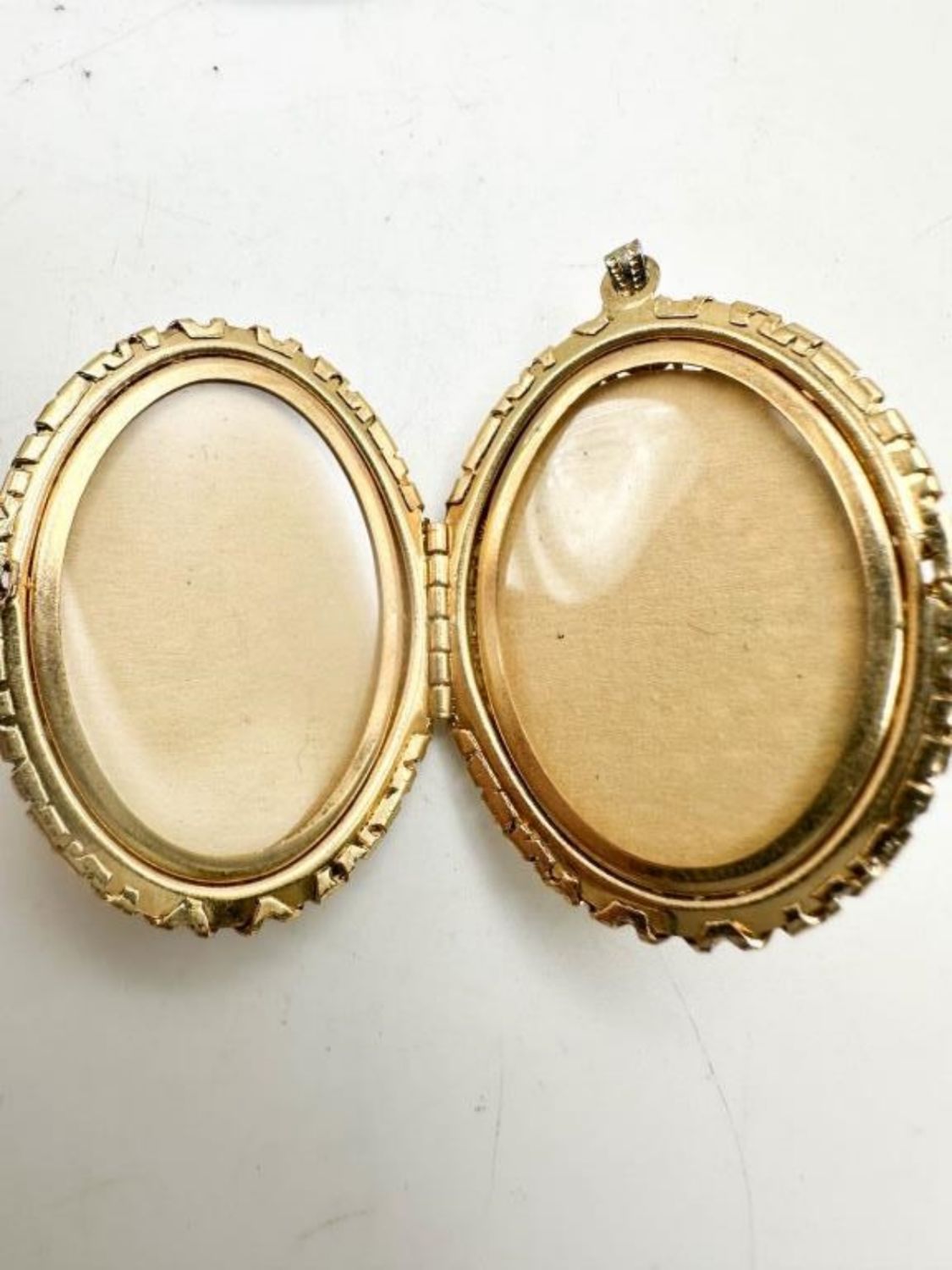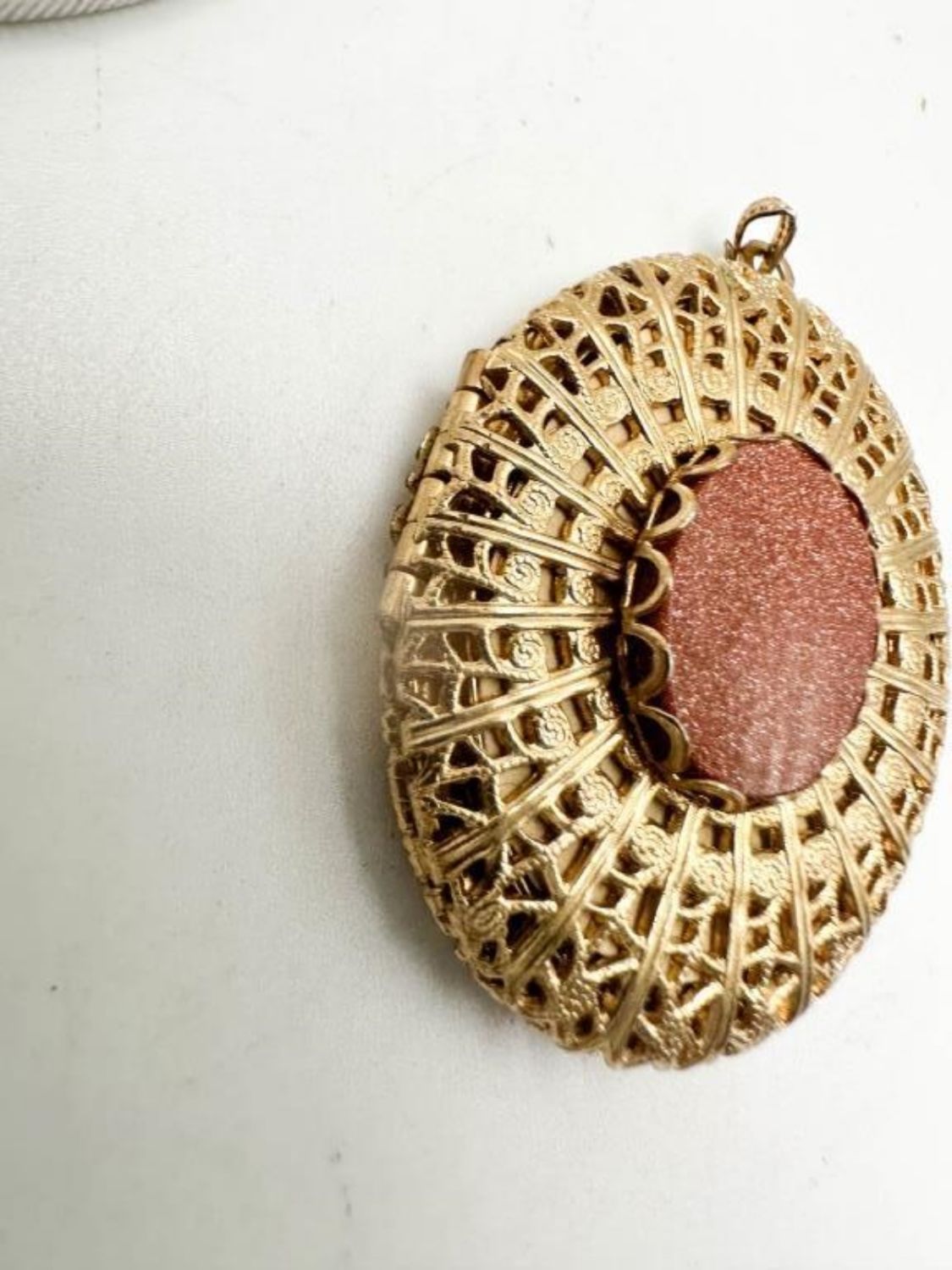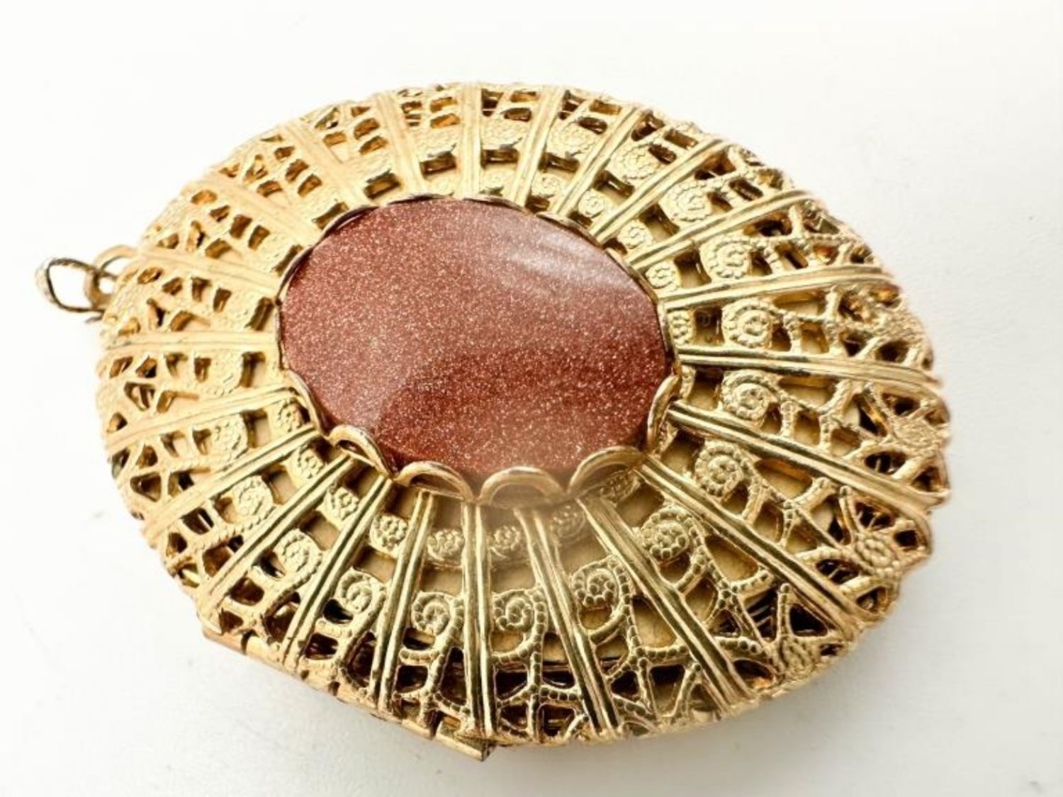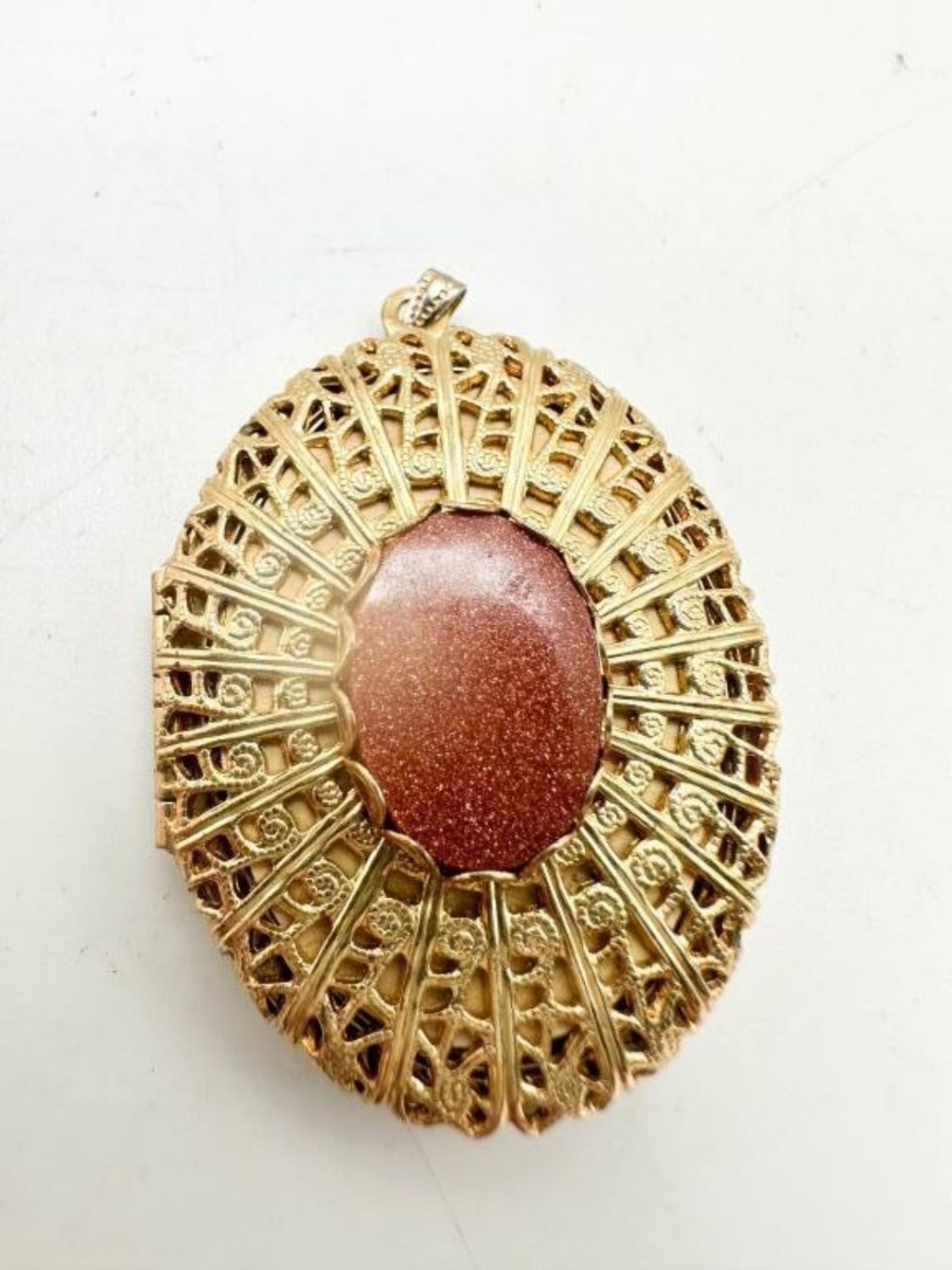 GOLDSTONE VINTAGE LOCKET IN SCROLL GOLD TONES