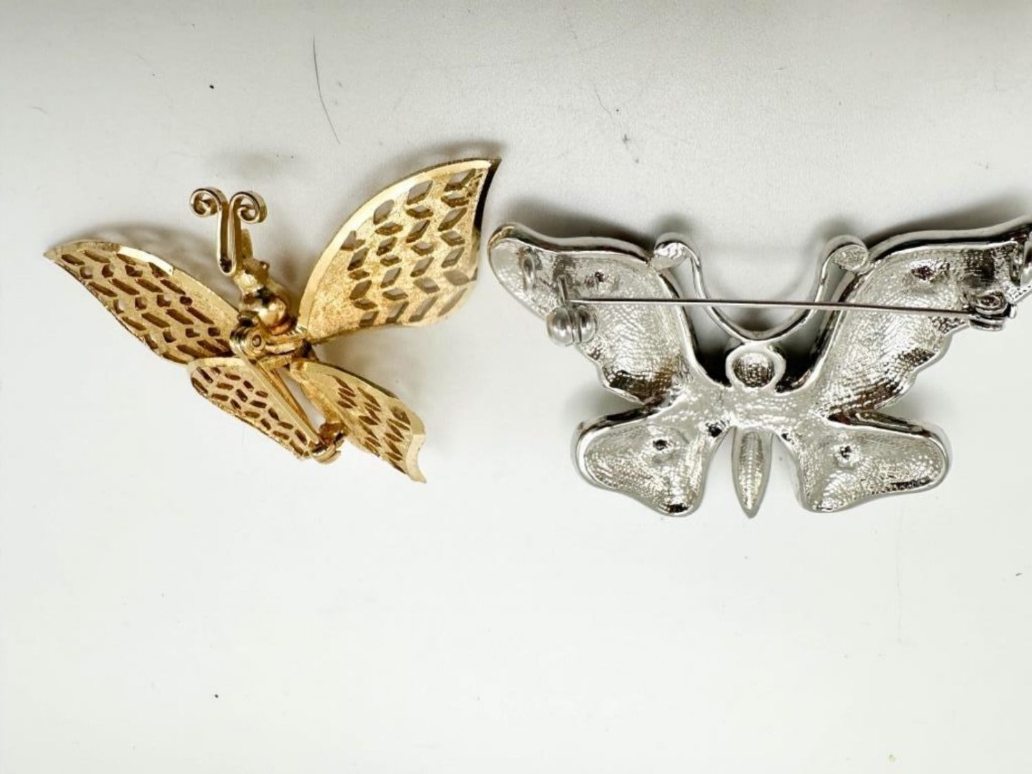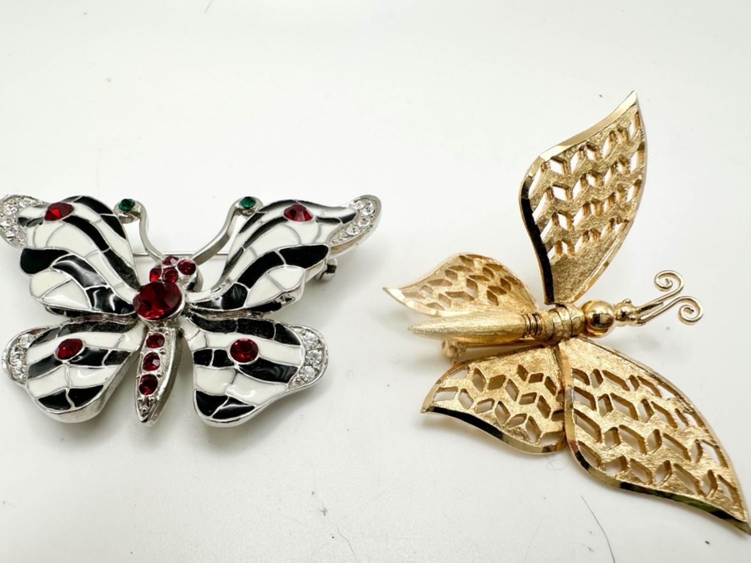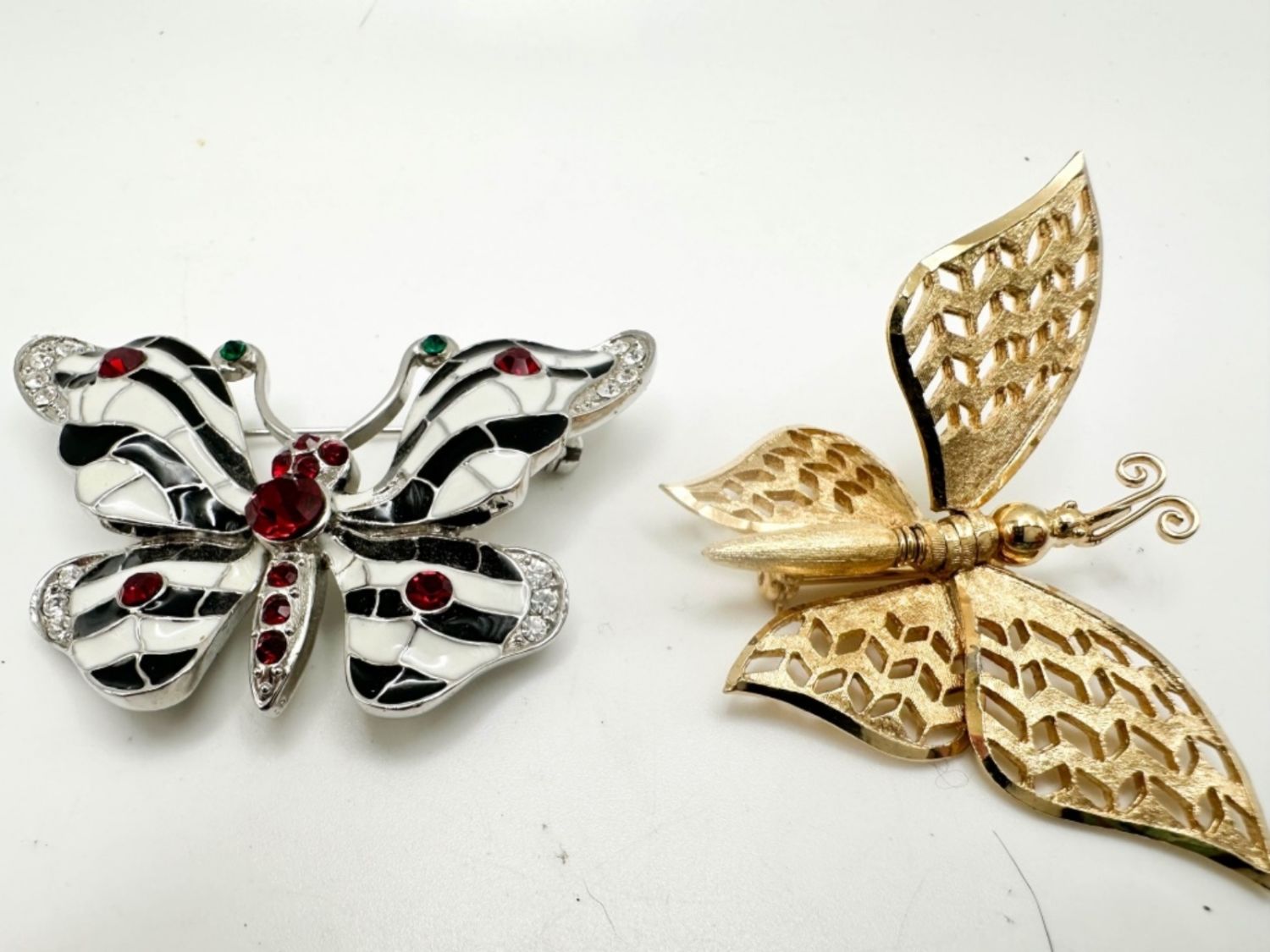 COLOR BUTTERFLY BROOCH AND GOLD TONE BUTTERFLY MOVING WINGS BROOCH