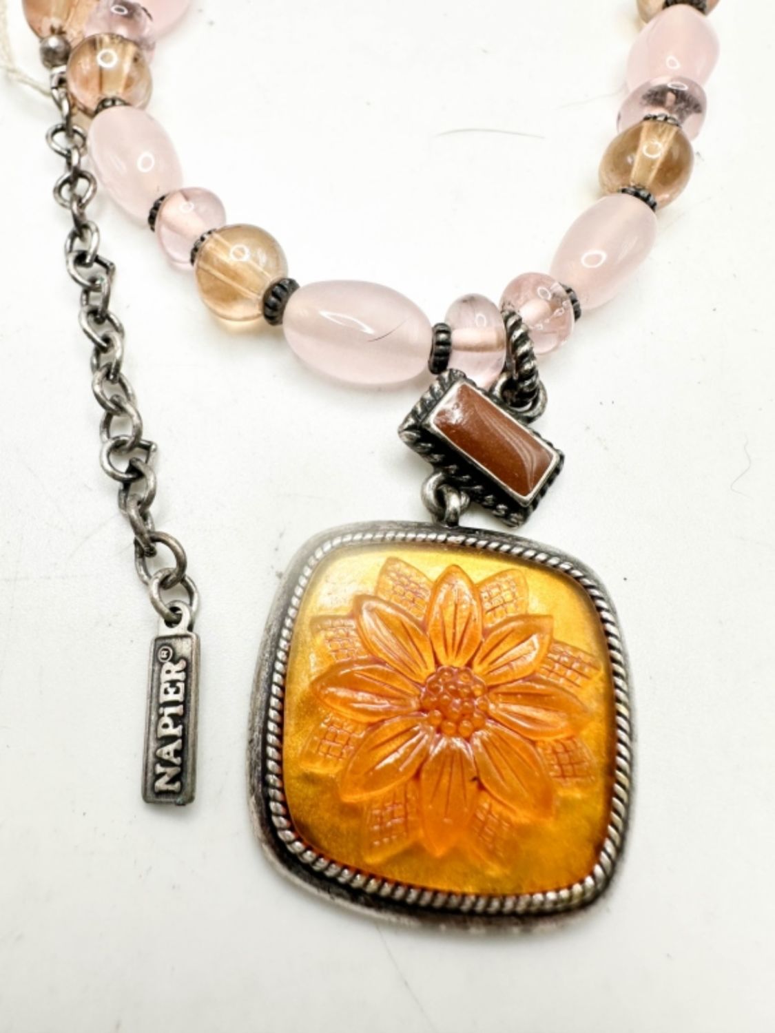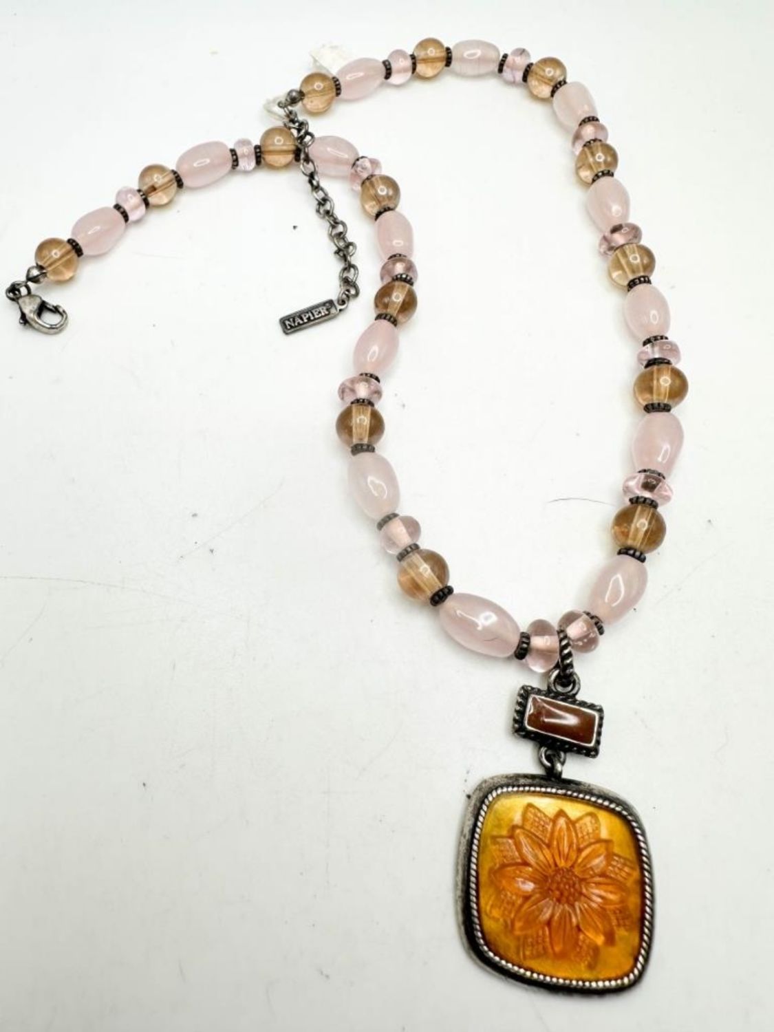 NAPIER SIGNED GLASS NECKLACE W FLORAL PENDANT