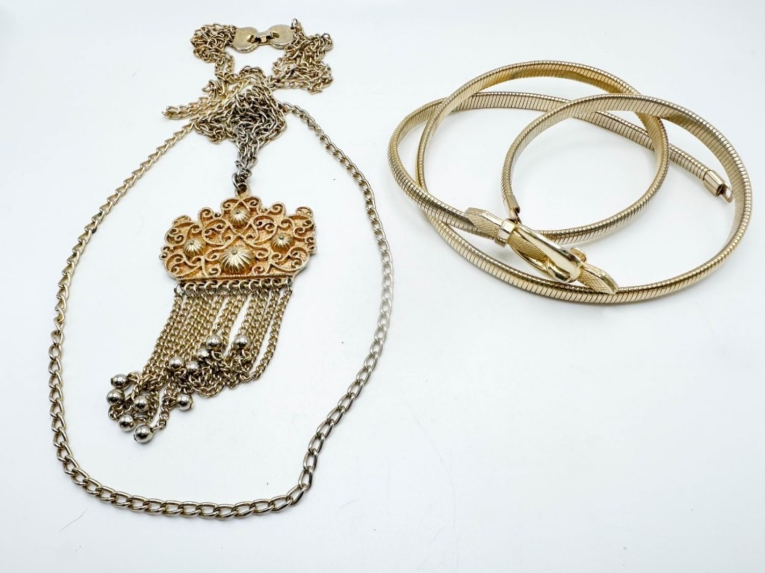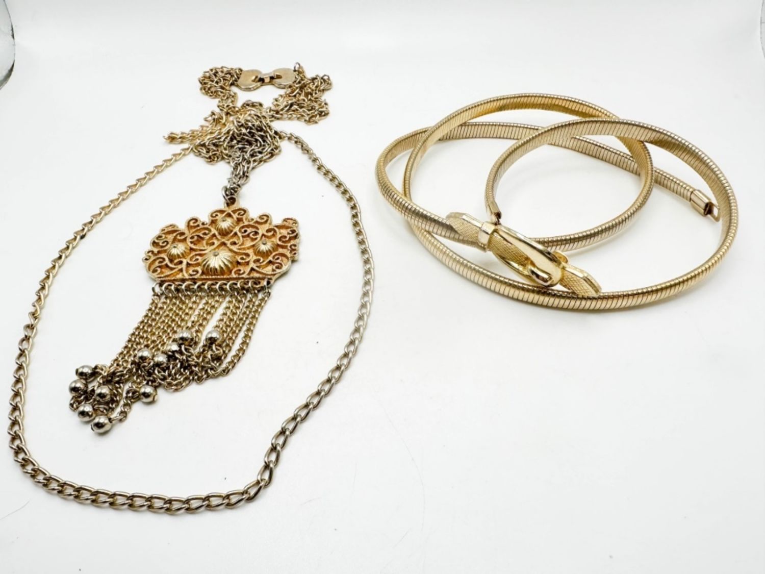 GOLD TONE BELT AND LARGE PENDANT NECKLACE