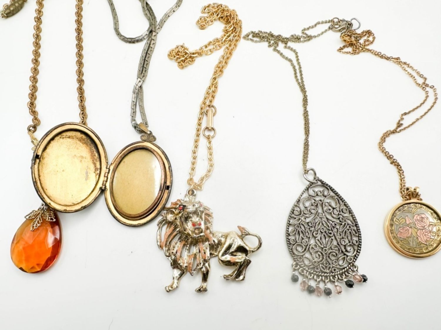 LION, LOCKET, + STONE NECKLACES