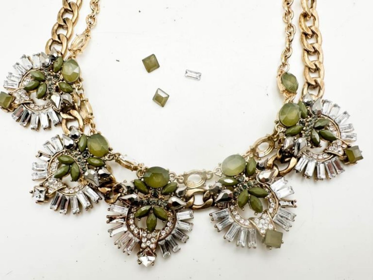 FANCY STONE NECKLACE, NEEDS REPAIR
