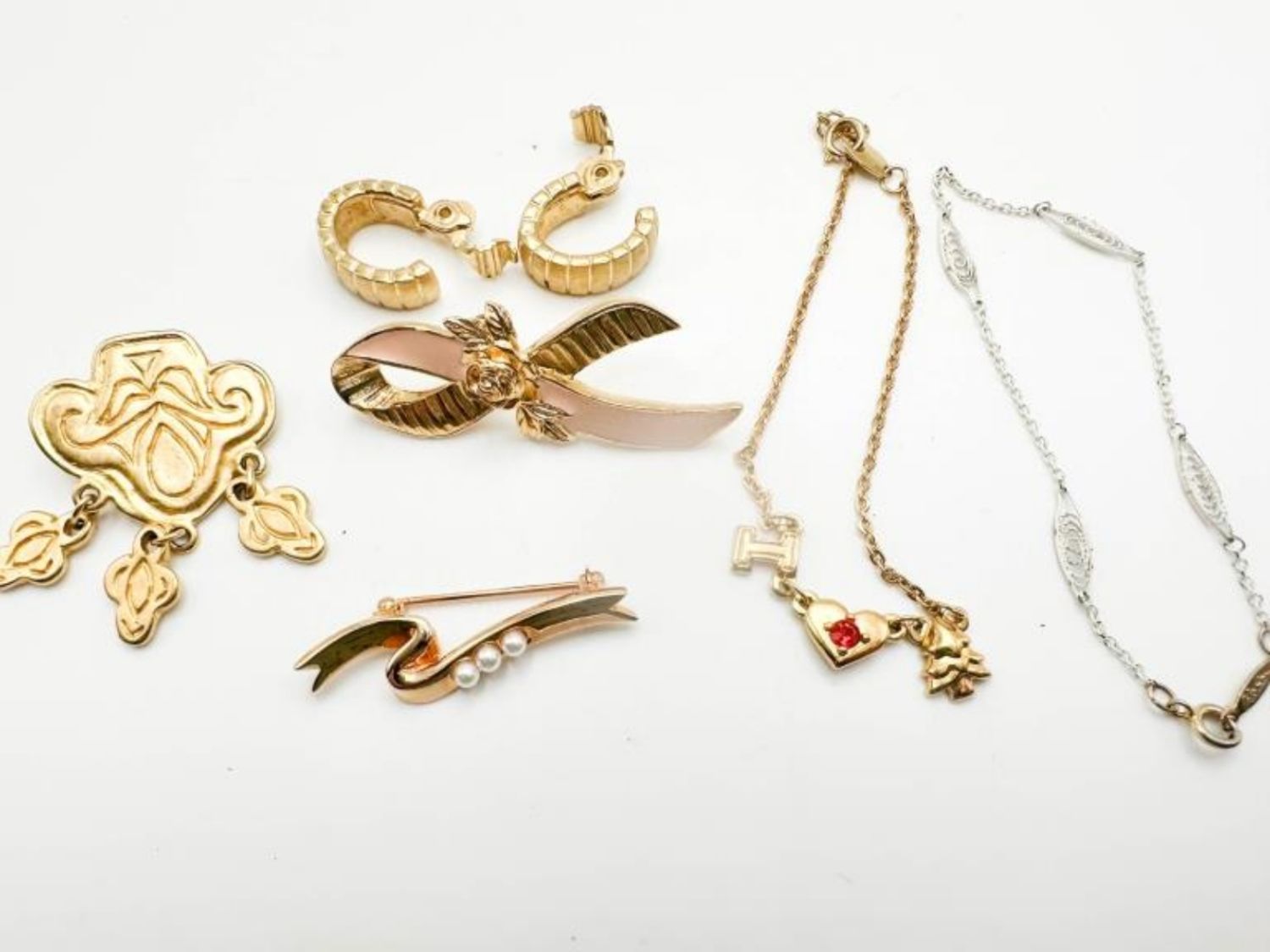 ACON GOLD TONE BRACELET AND NAPIER WHITE BRACELET AND AVON AND OTHER