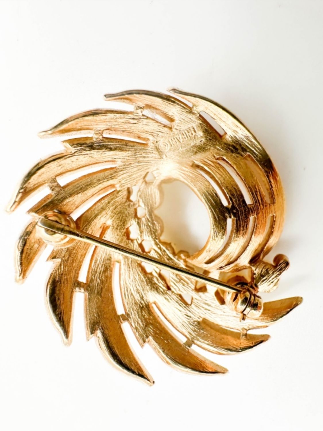 TRIFARI CROWN SWIRL BROOCH , MISSING FAUX PEARL