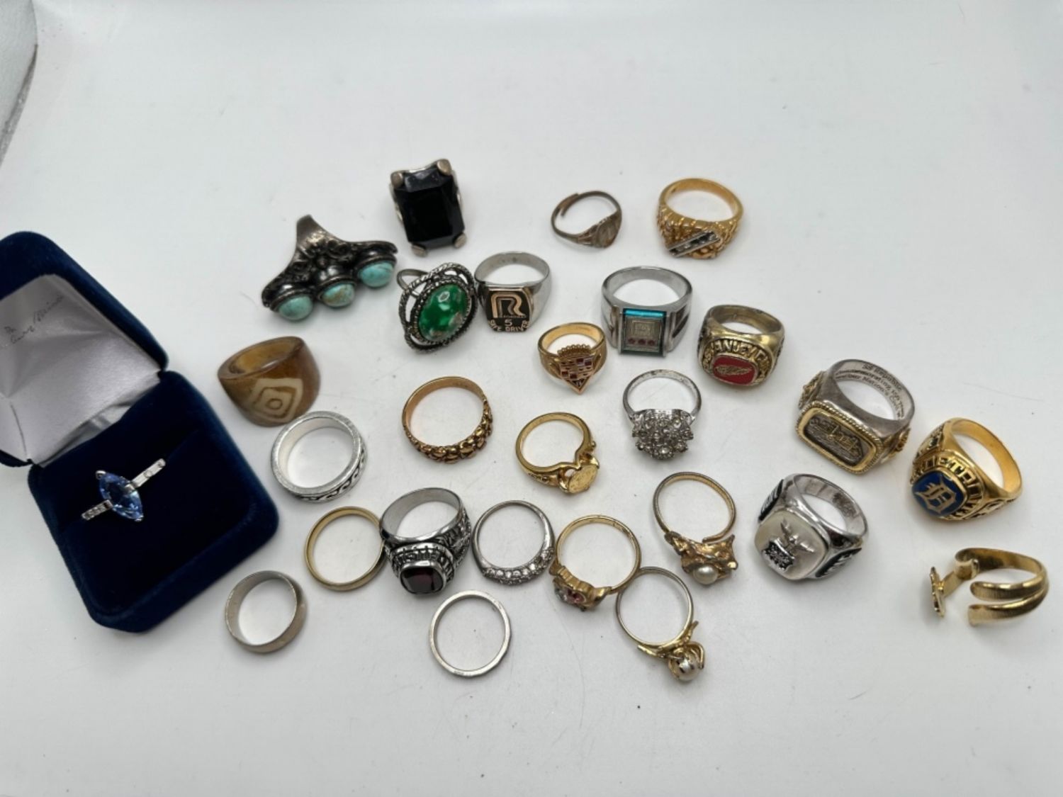 RINGS ASSORTED, VARIOUS STYLES, SIZES AND CONDITIONS