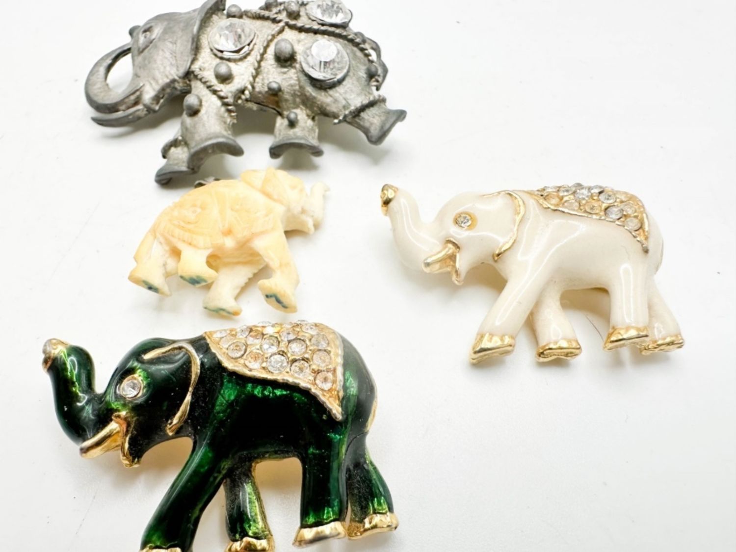 ELEPHANTS , TWO WITH STONE EYES, RHINESTONES W