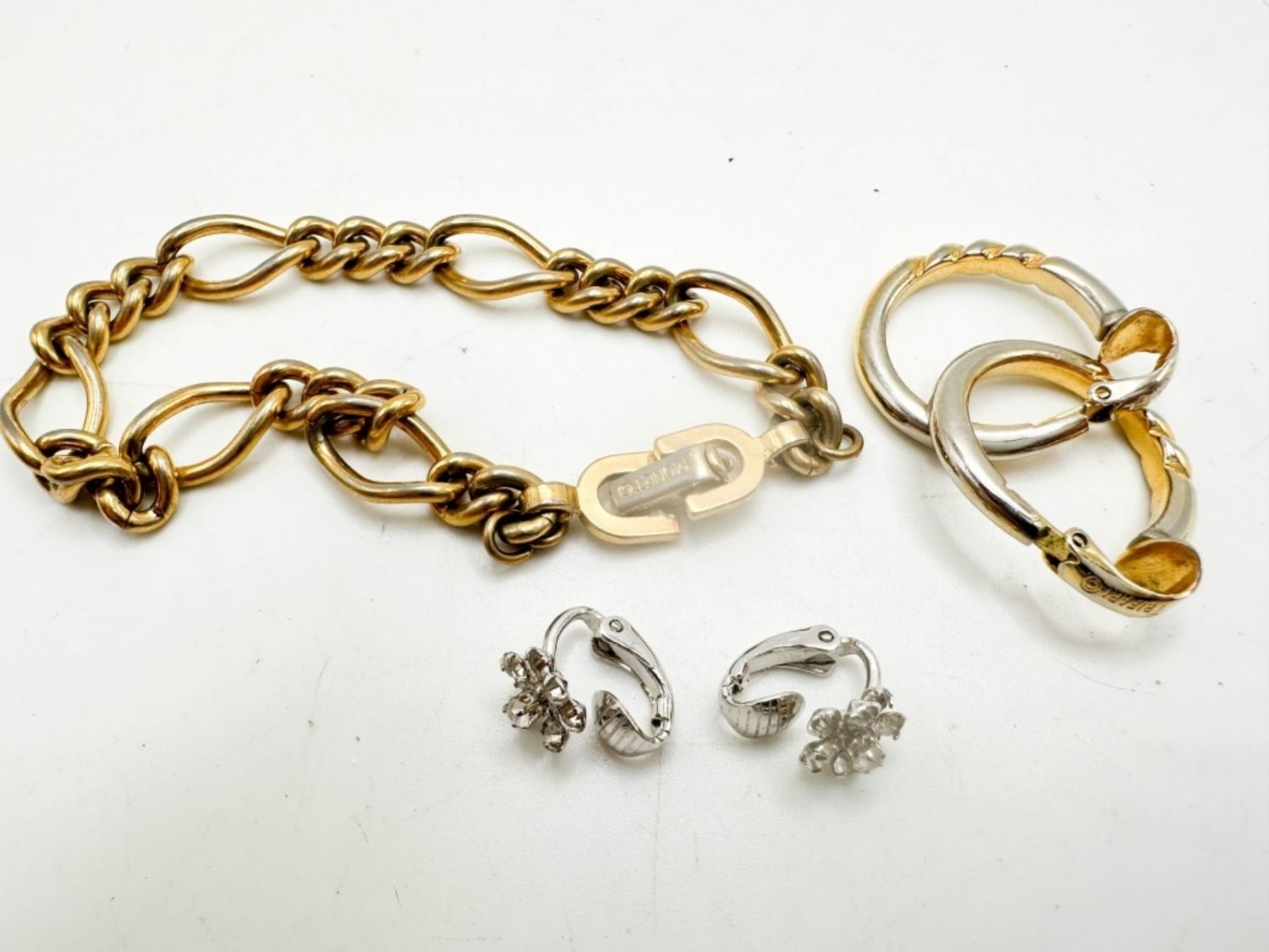 MONET BRACELET , TRIFARI CROWN HOOP EARRINGS, AVON STONE EARRINGS