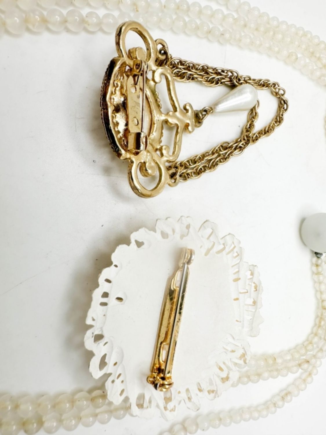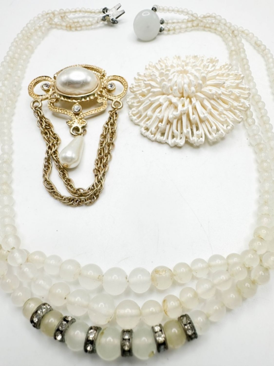 BEAUTIFUL DANGLE DROP BROOCH, OTHER BROOHA DN GLASS NECKLACE