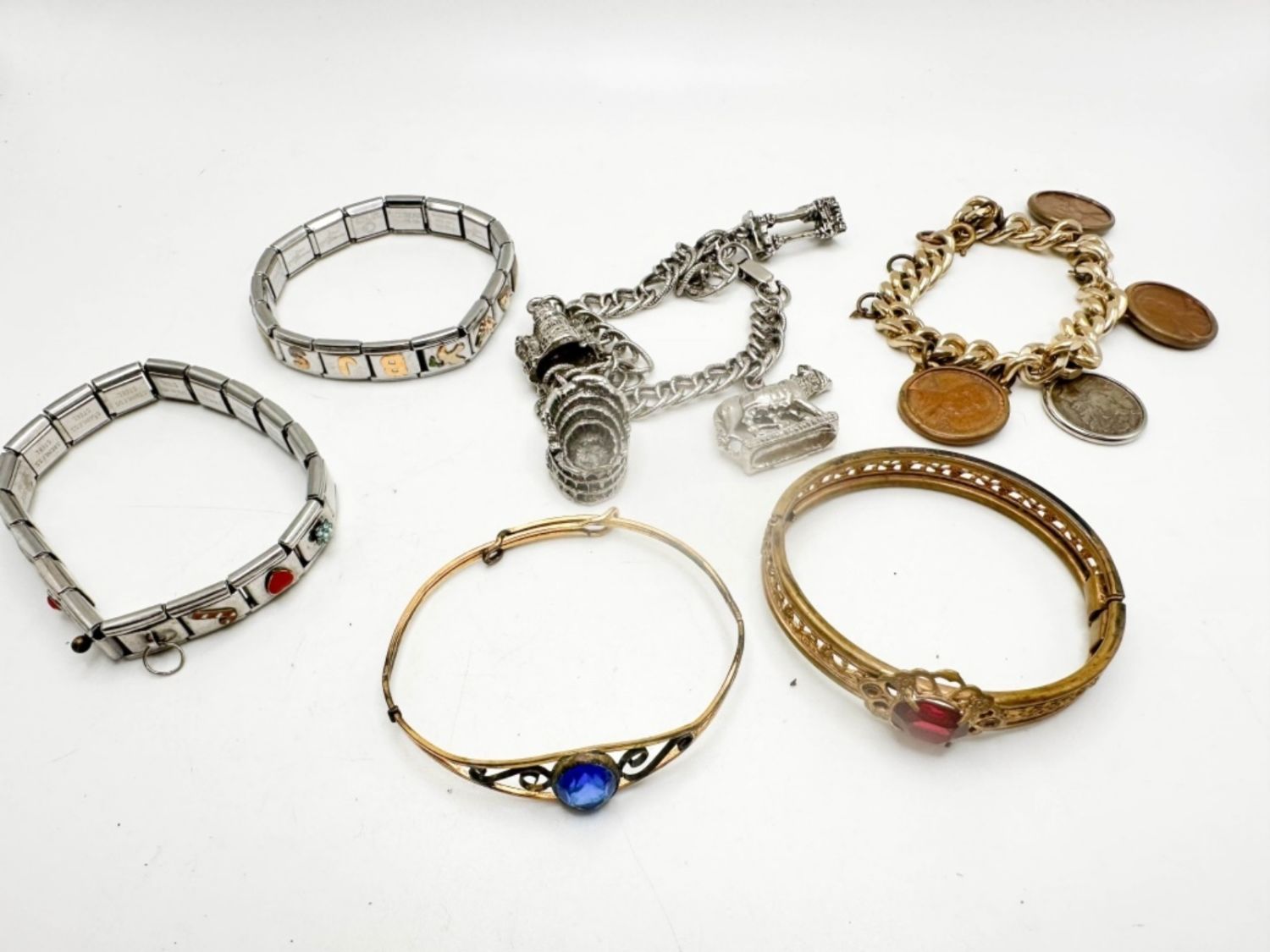 ANTIIQUE? BRACELETS, MEMORY BRACELETS, COIN AND CHARMS WOW