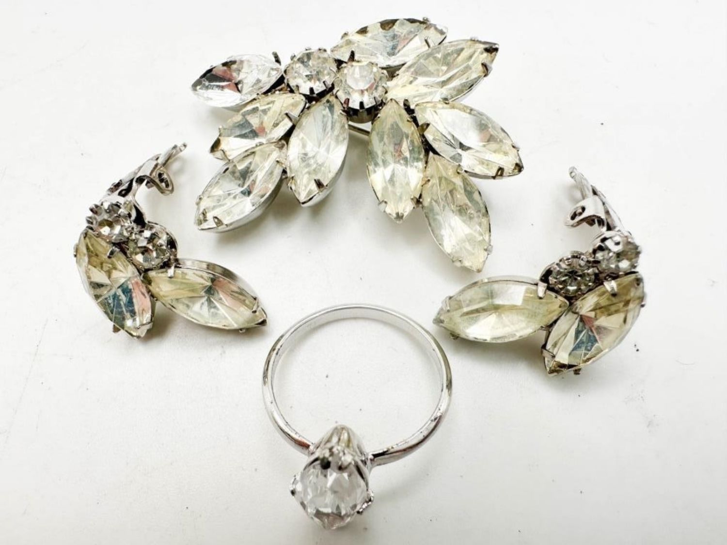 RHINESTONES BROOCH AND EARRINGS +
