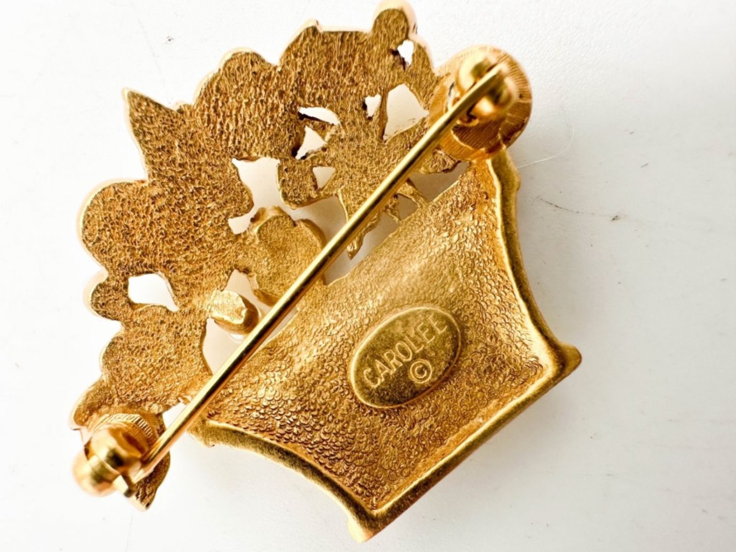 CAROLEE SIGNED FLORAL BASKET BROOCH