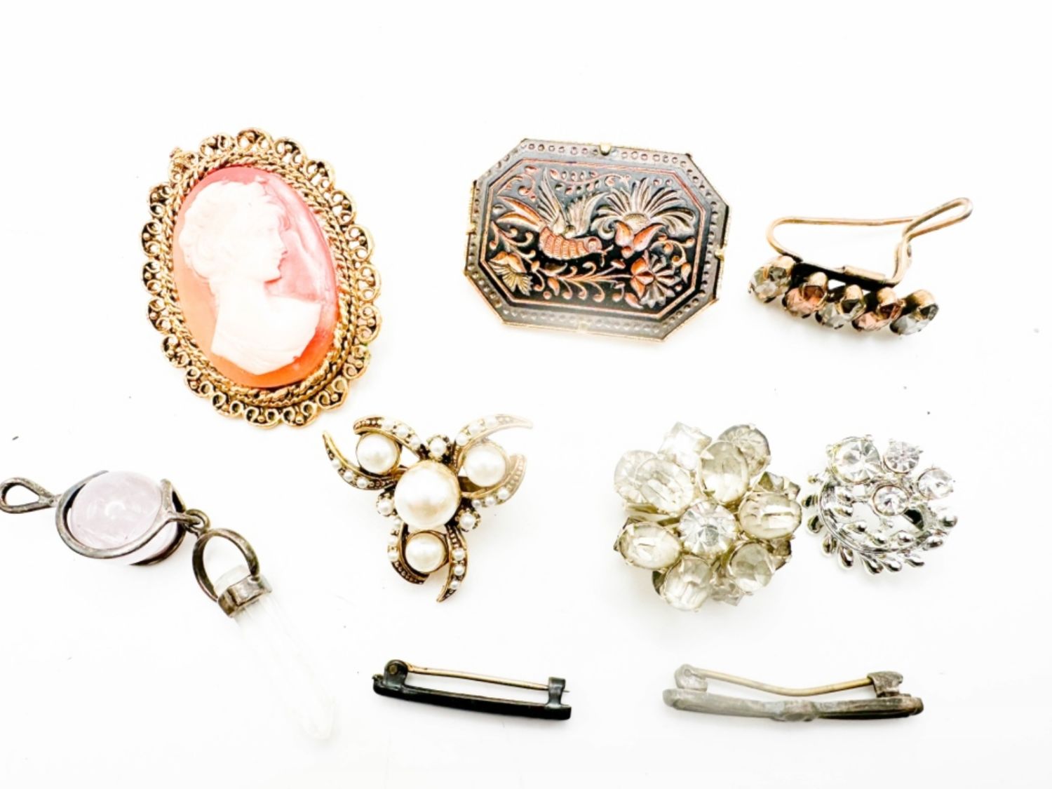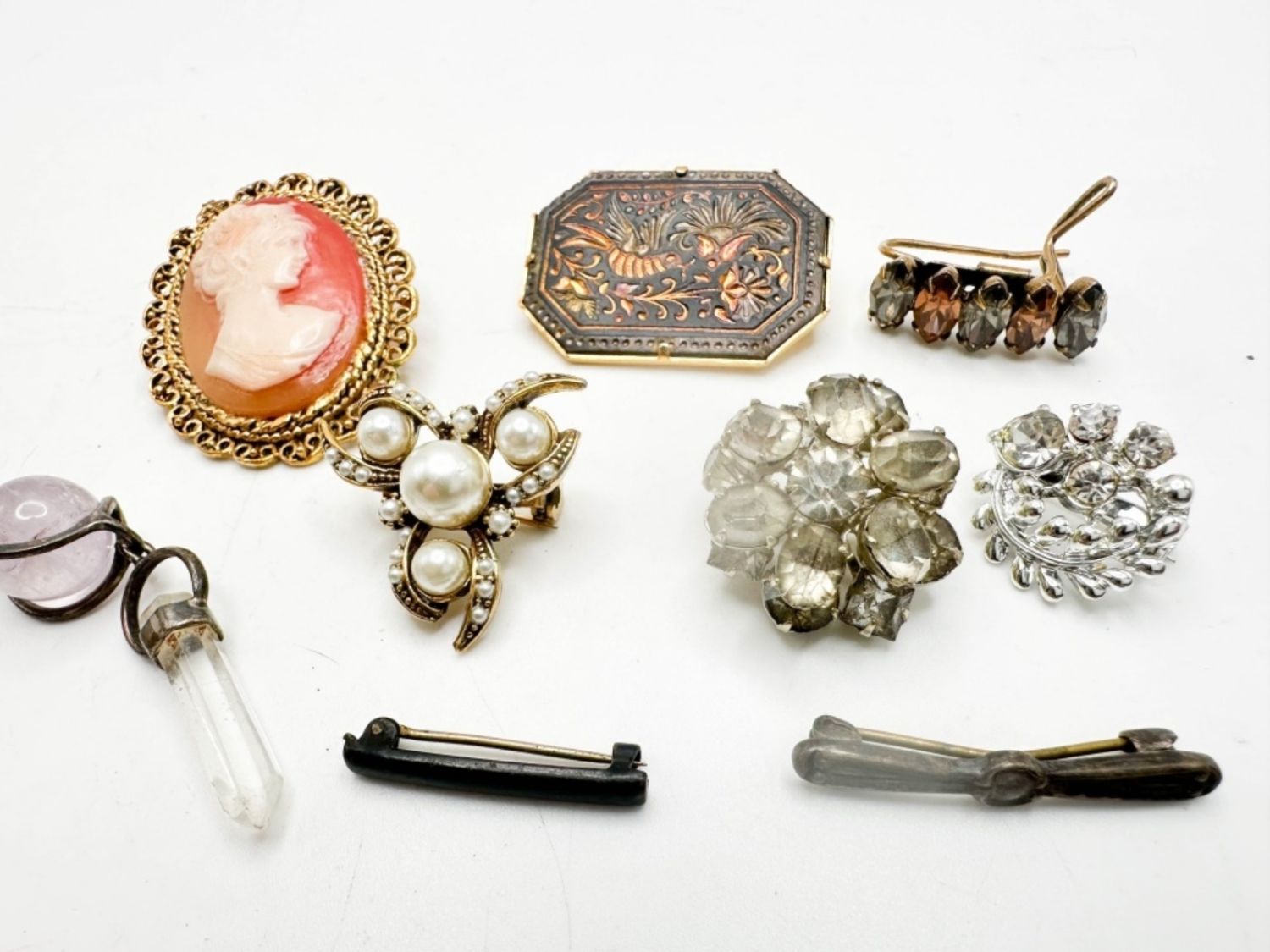 C CLASP STONE BROOCH , RHINESTONE BROOCHES C CLASP BROOCHE CAMEO