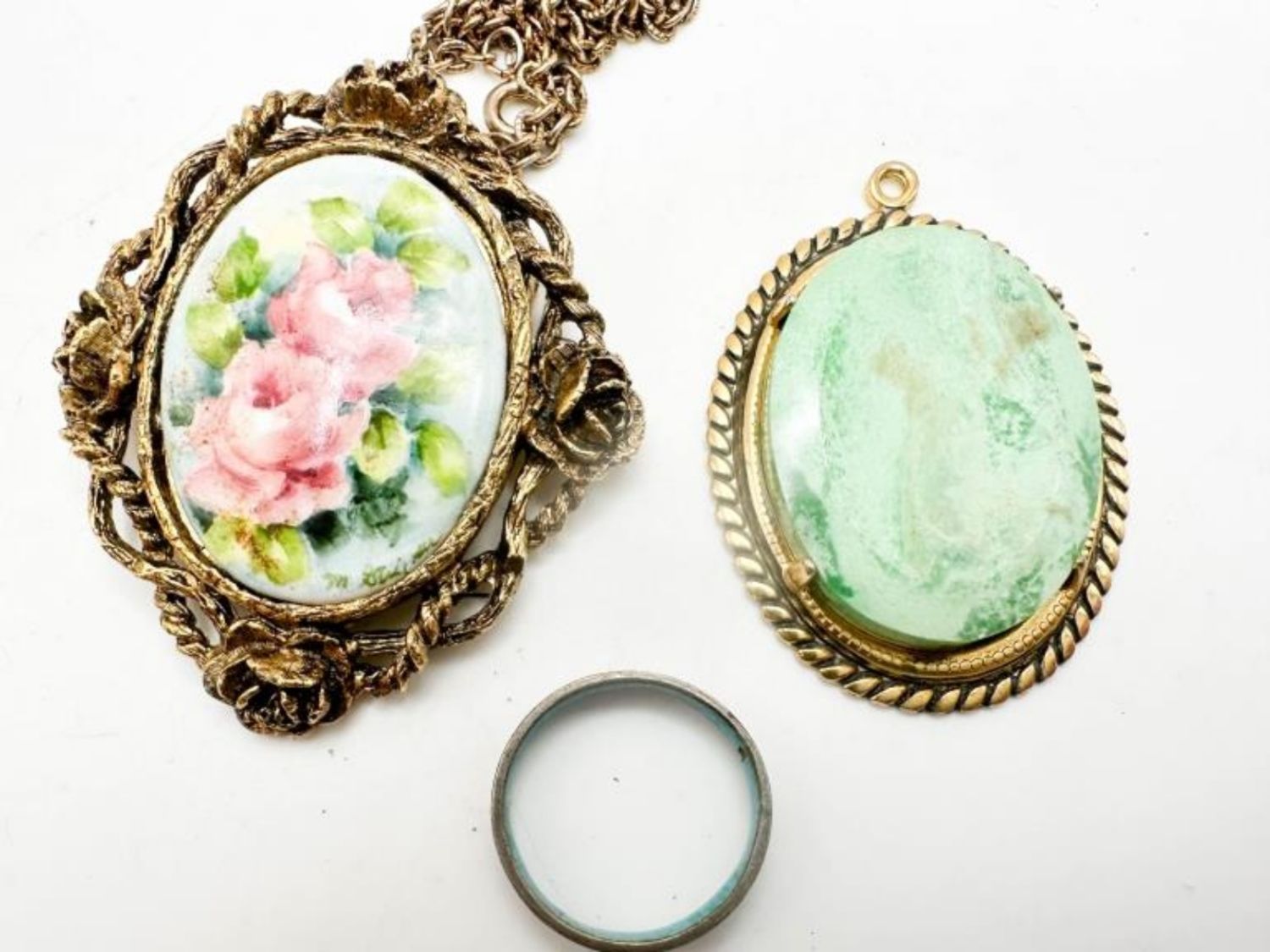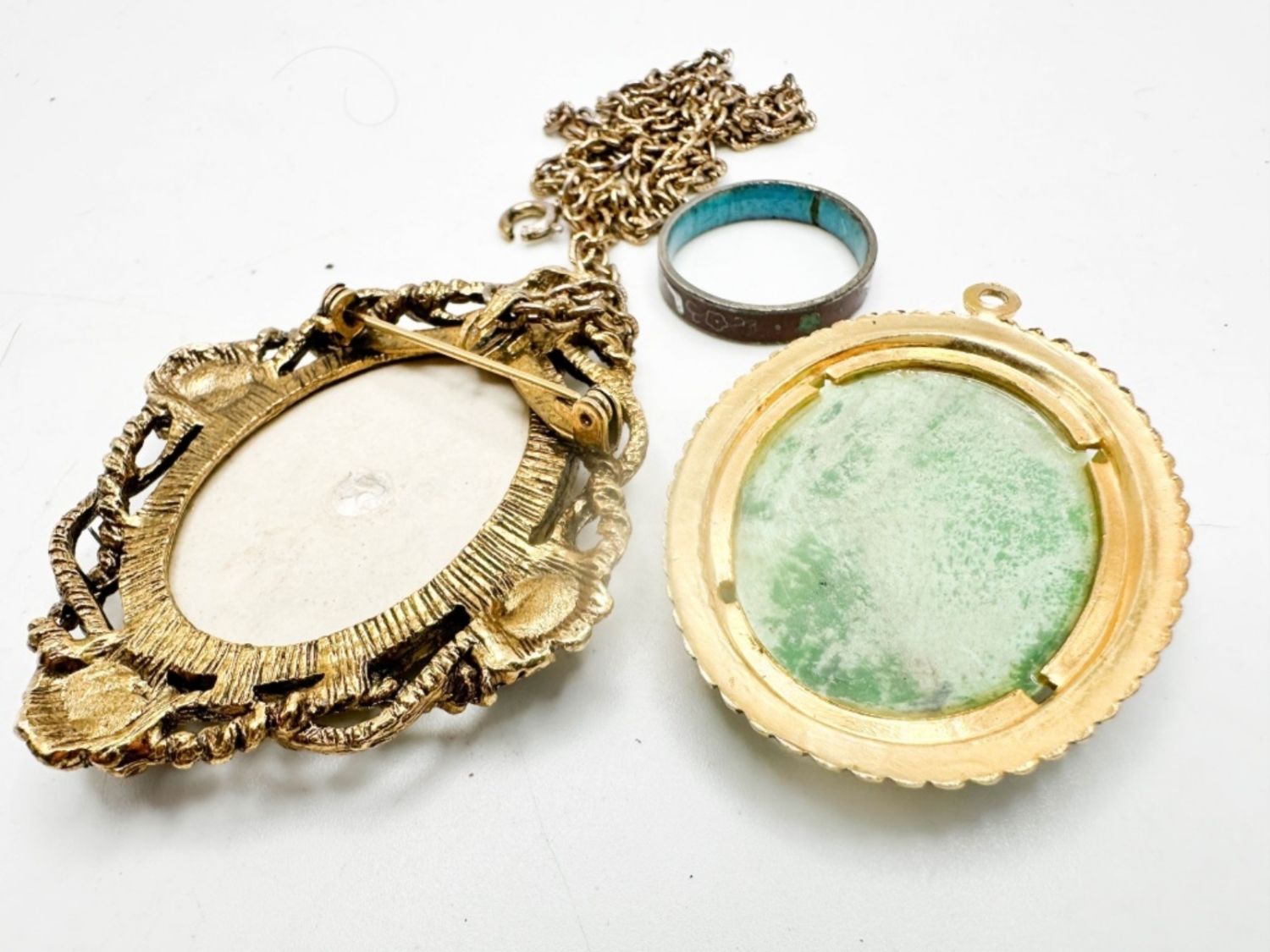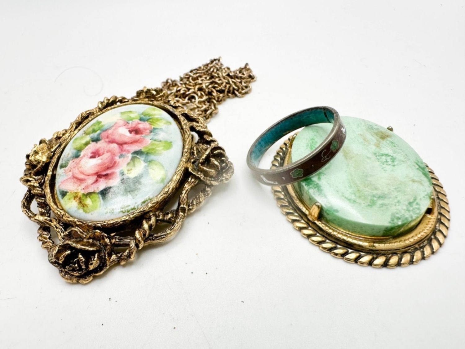 CAMEOS PENDANT BROOCH, CAMEO PENDANT, ENAMEL PAINT COLOR RING