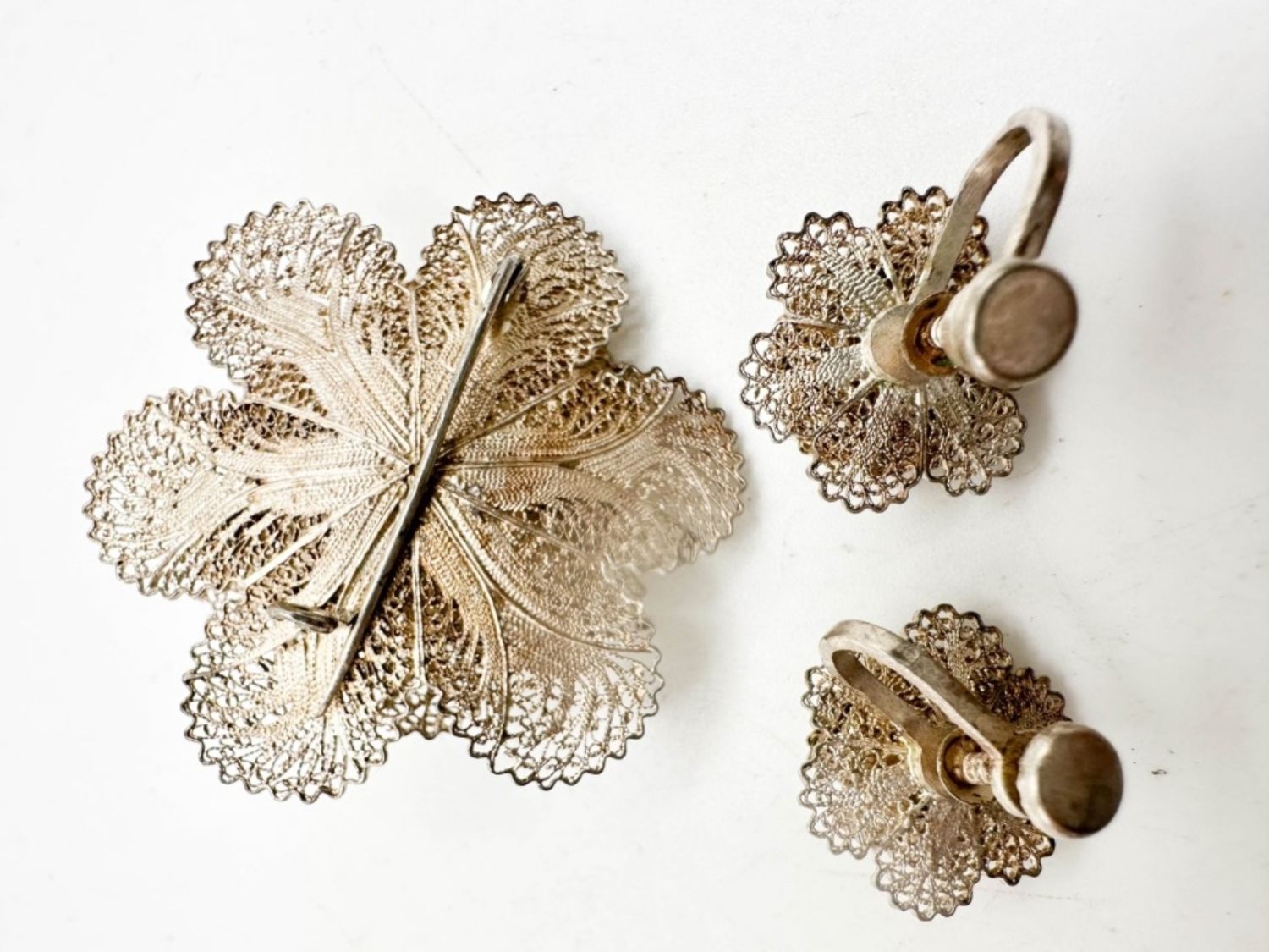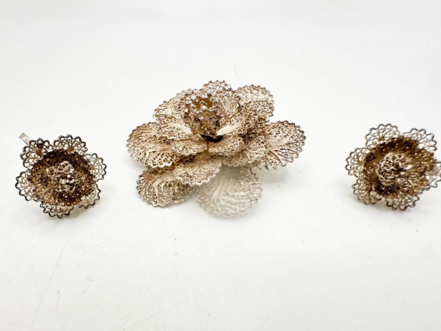 FOIL FLORAL BROOCH AND EARRINGS SET