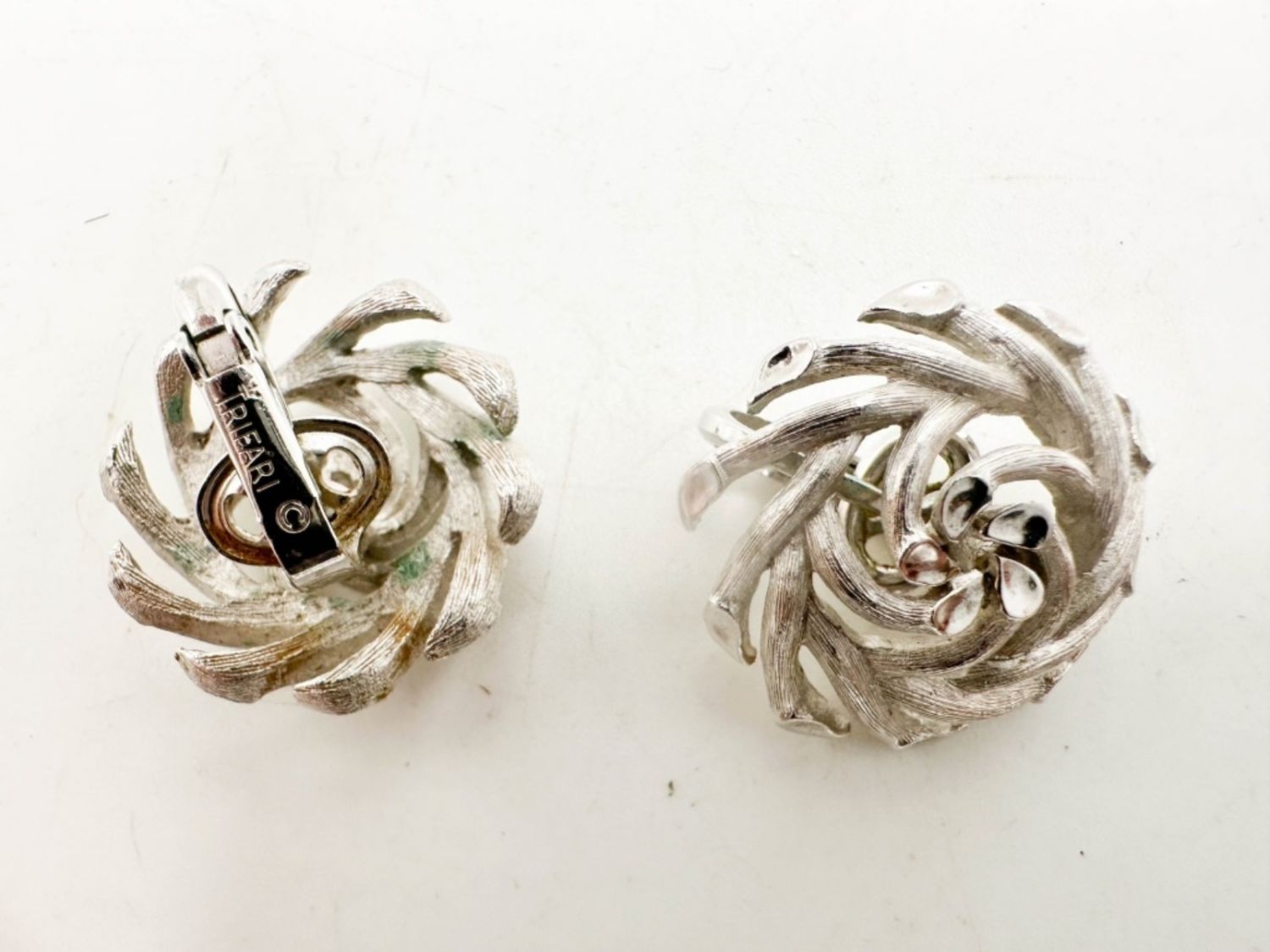 TRIFARI CROWN SWIRL EARRINGS IN SILVER TONES