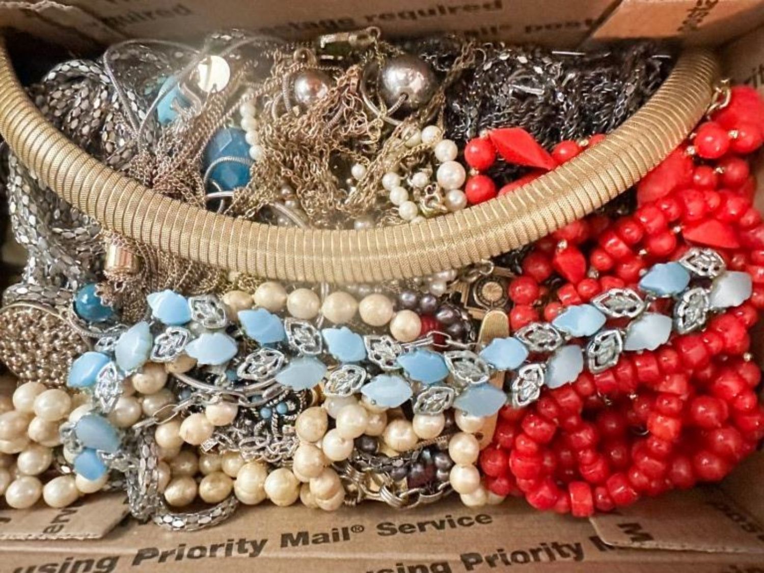 VINTAGE AND MORE TREASURE BOX , NECKLACES, WEARABLE ,IN SMALL FLAT RATE BOX