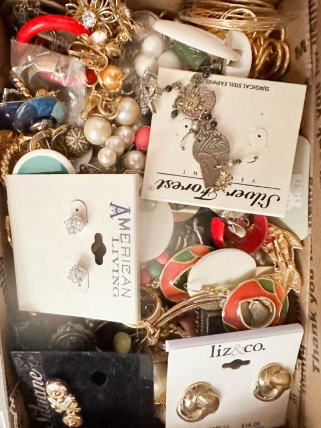 VINTAGE AND MORE TREASURE BOX, EARRINGS, WEARABLES, SMALL FLAT RATE BOX