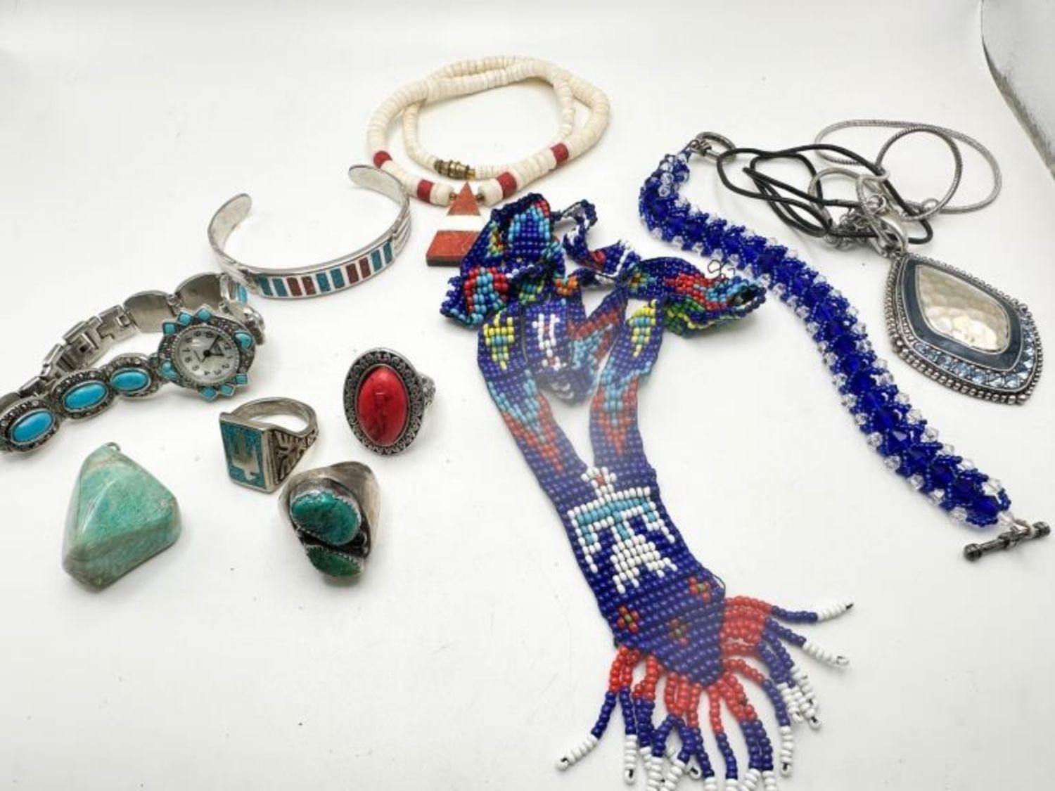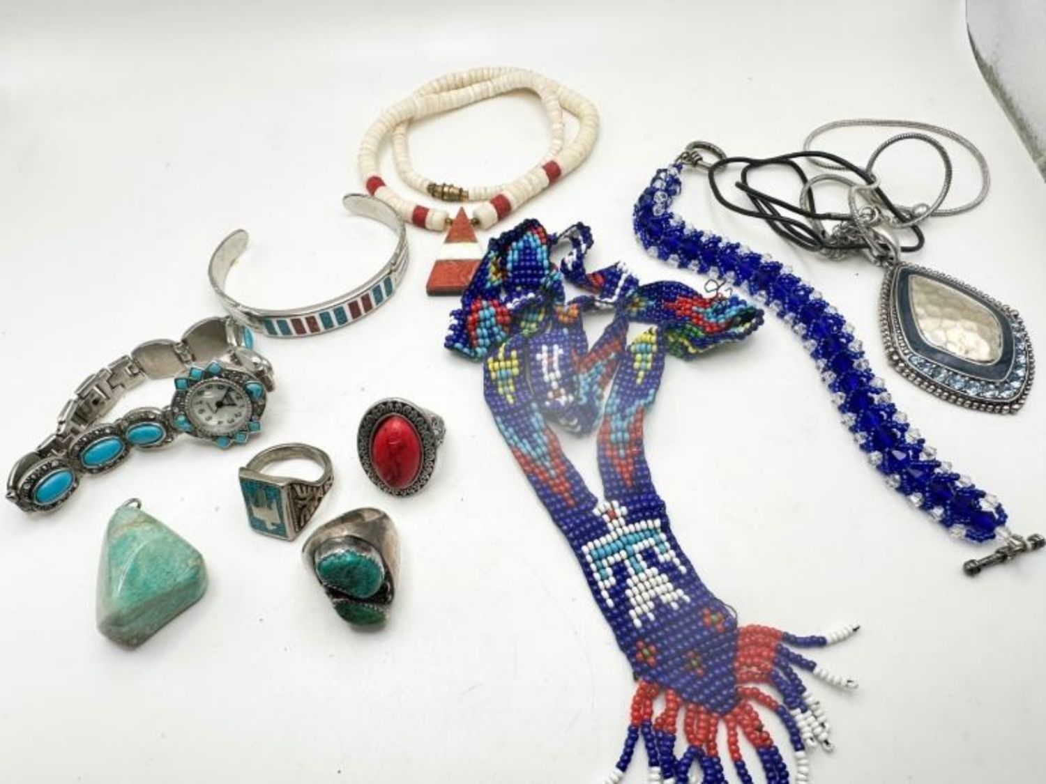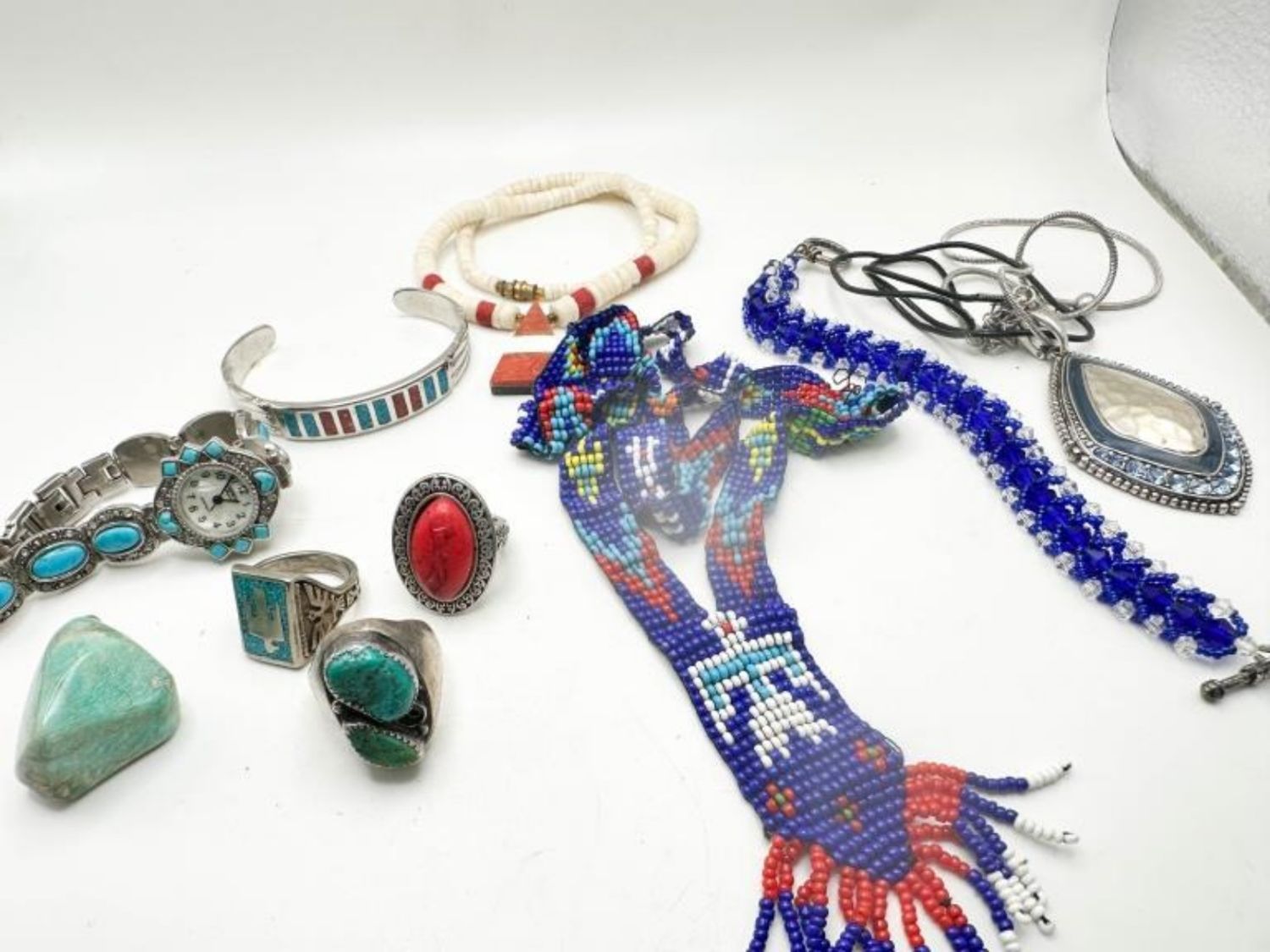 BEADED NECKLACE AND TURQUISE STYLE RINGS AND MORE