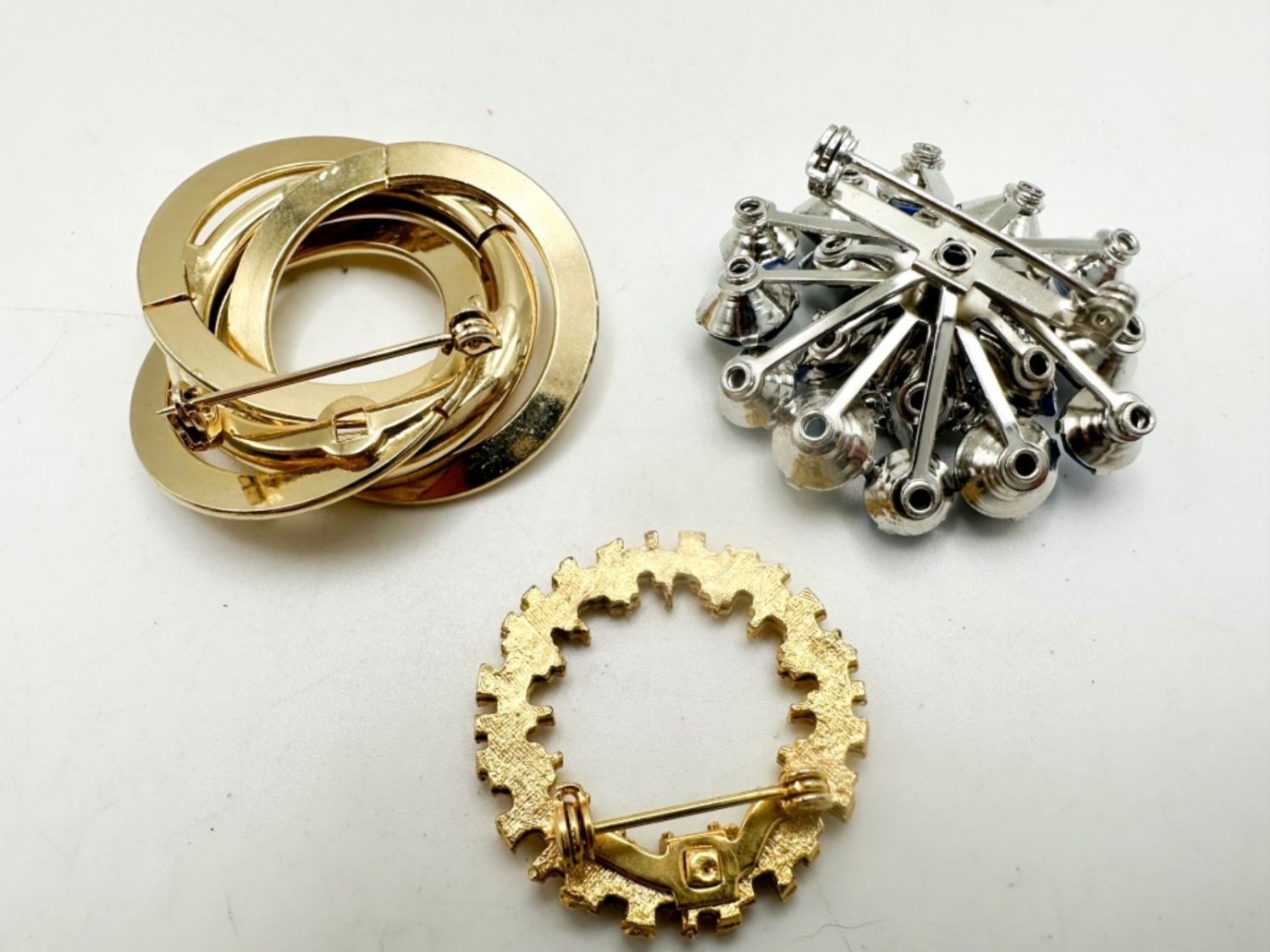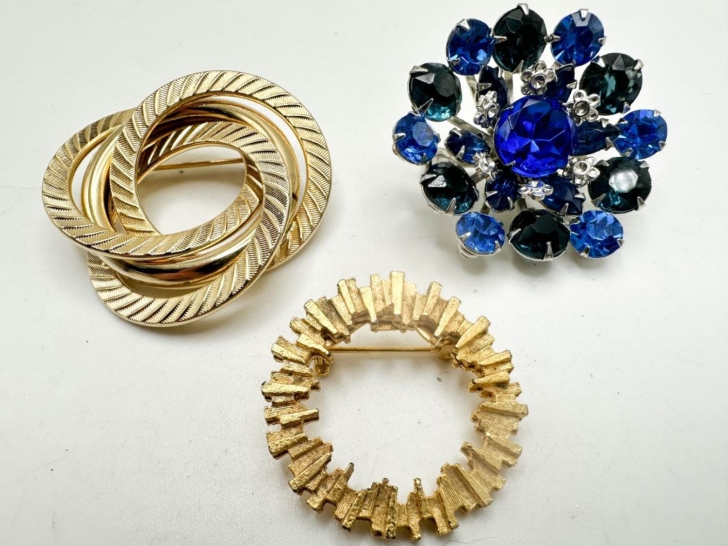 CUIRCLES BROOCHES , BLUE STONE AND GOLD TONES