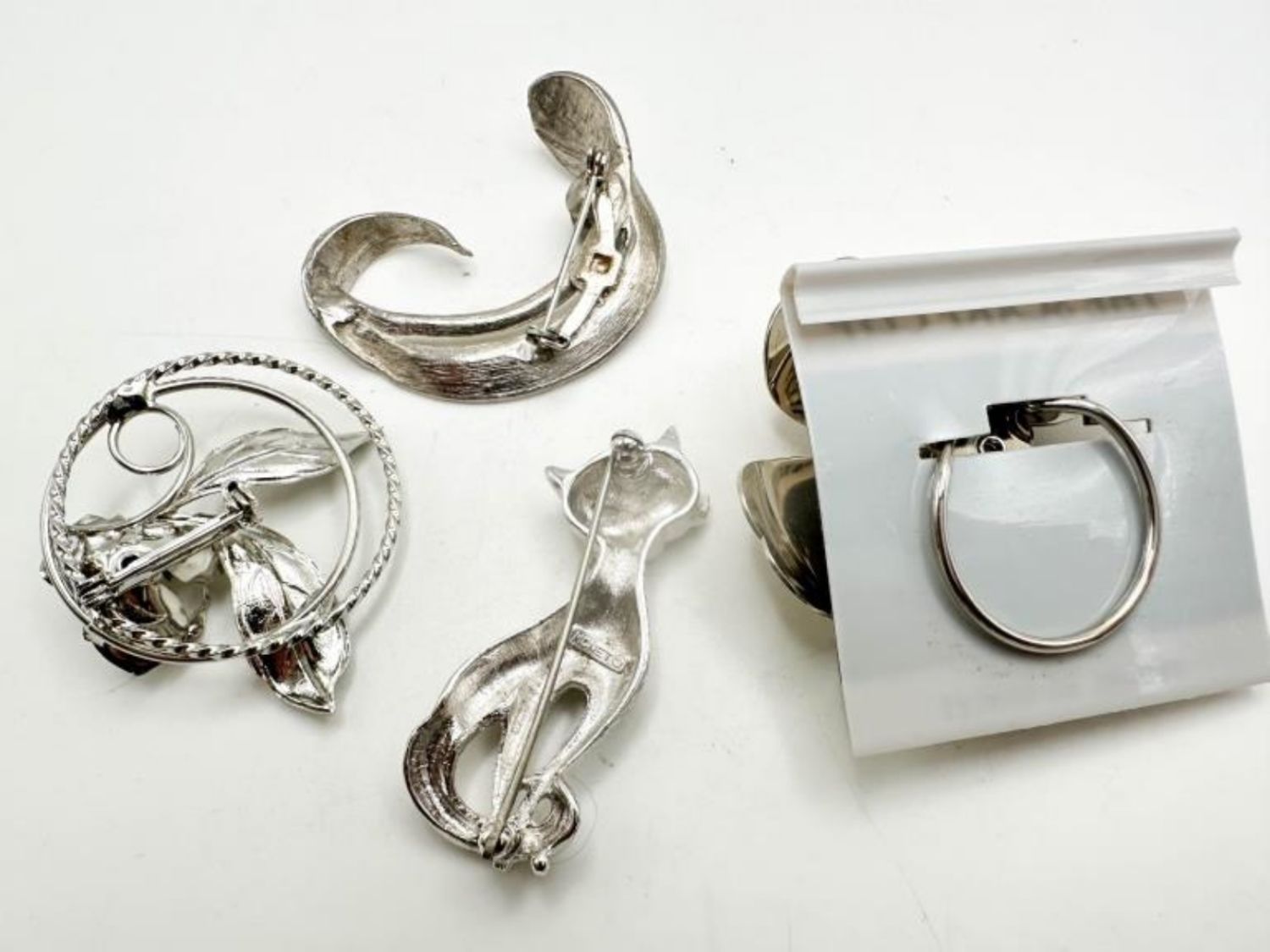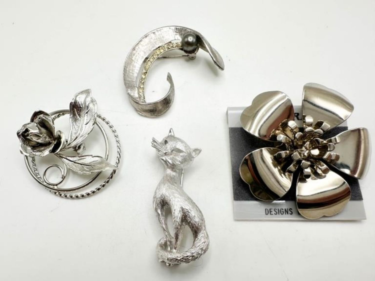 MONET CAT BROOCH, SIGNED , FLORAL CLIP AND BROOCH