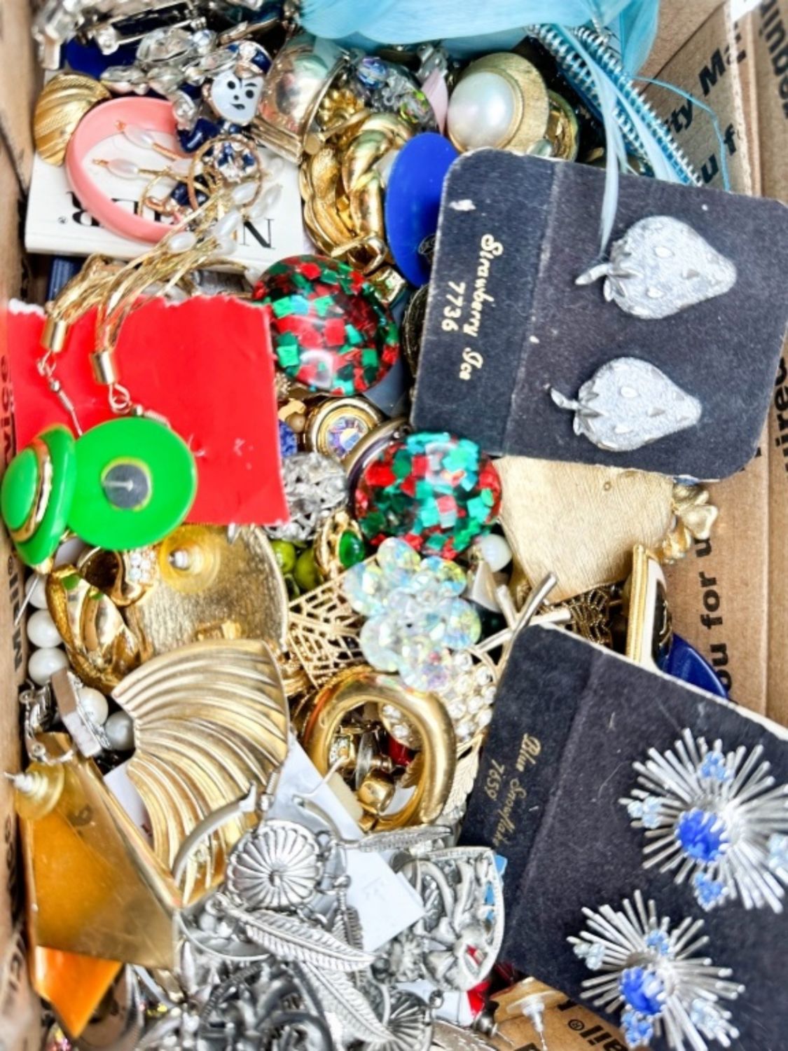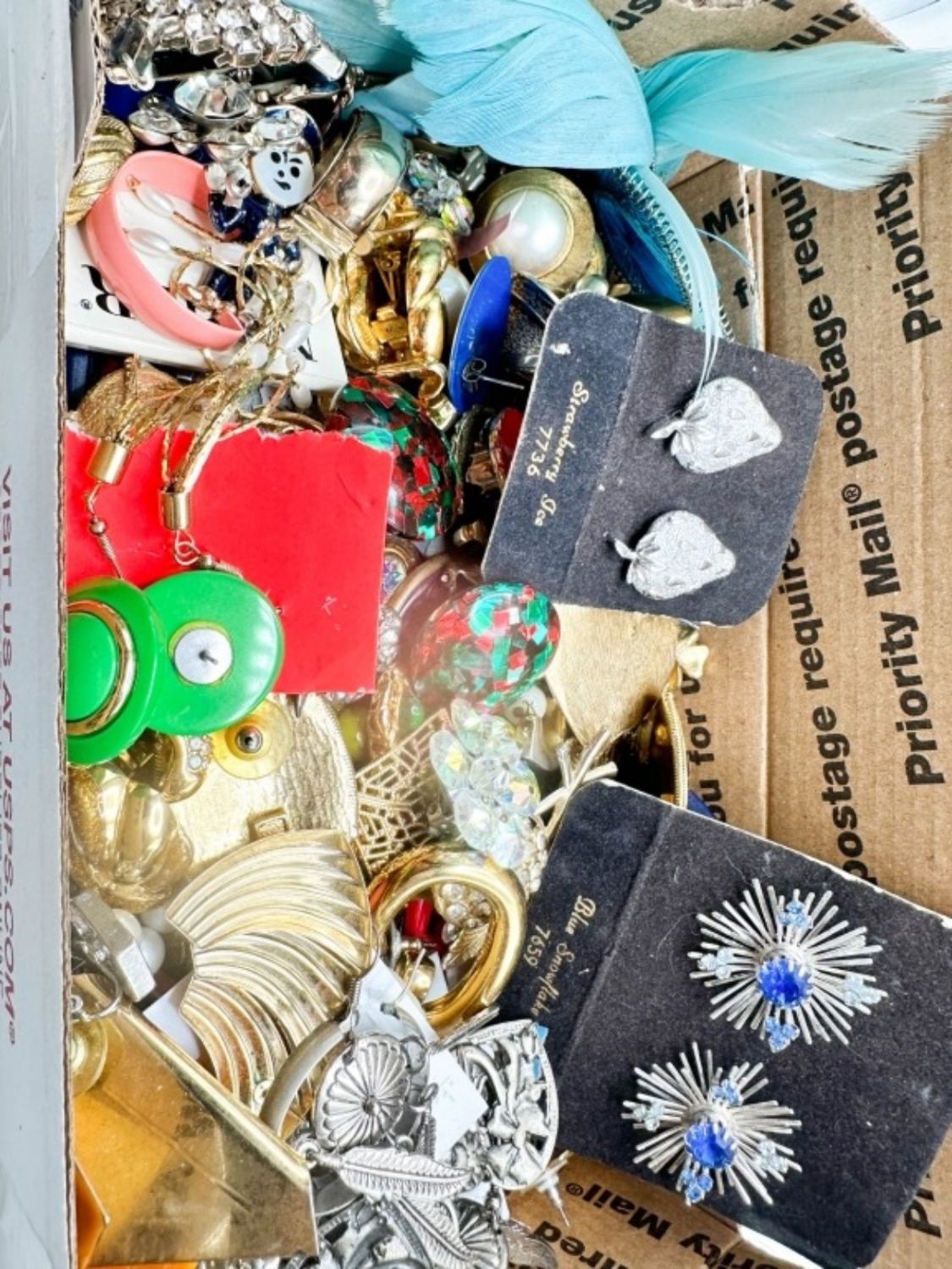 MISC EARRINGS ASSORTED , MAY BE MISSING MATES, IN SMALL FLAT RATE BOX