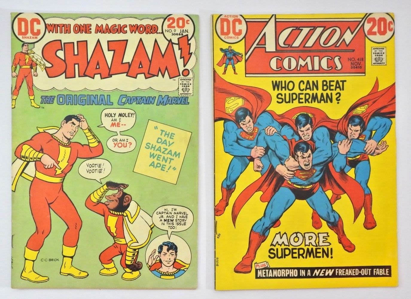 Action Comics #418 DC 1972 Bronze Age – Good Condition; Shazam! No. 9 DC Comics 1974 Captain Marvel – Good Condition.