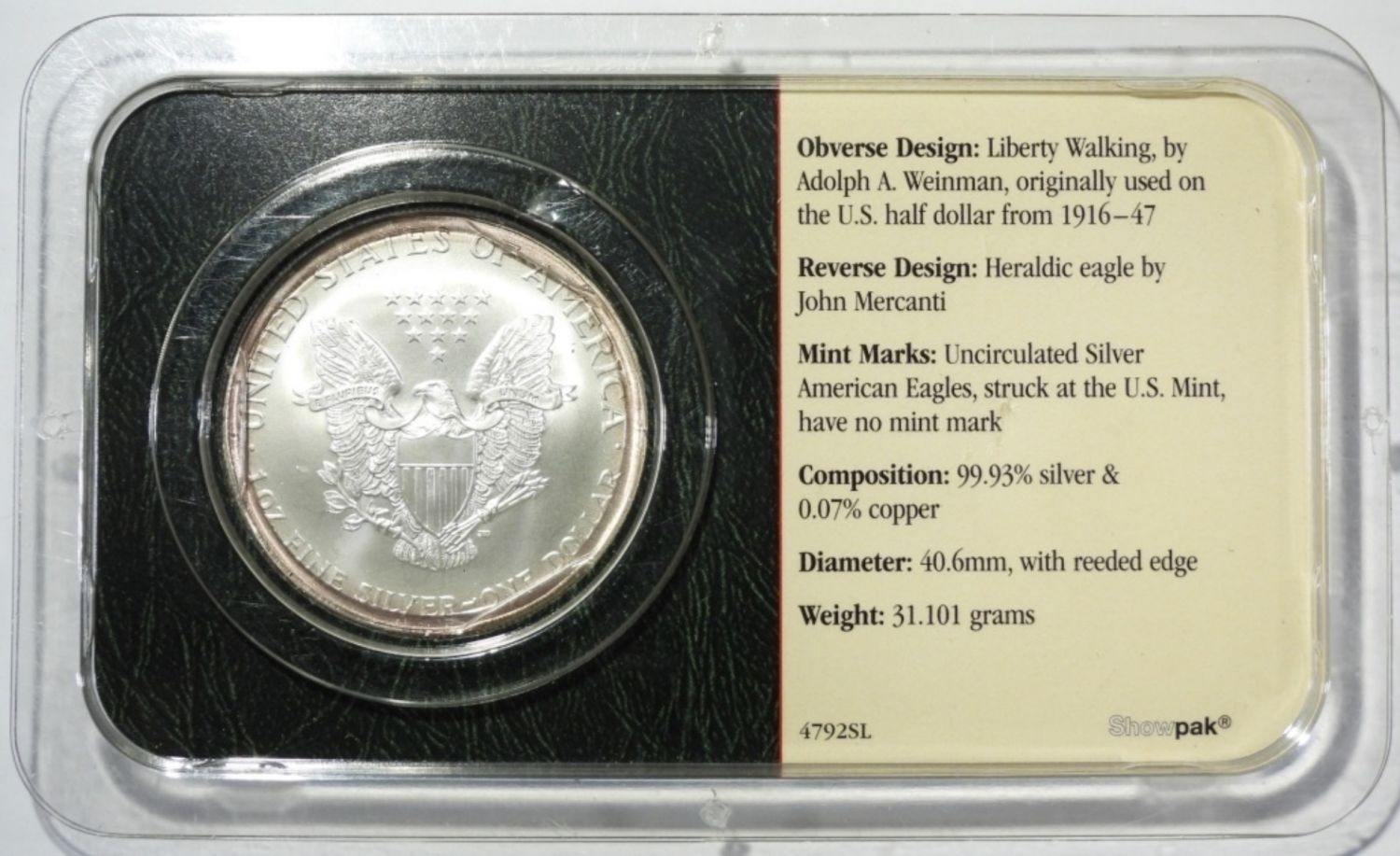 AMERICAN SILVER EAGLE 1ozt .999 PURE SILVER