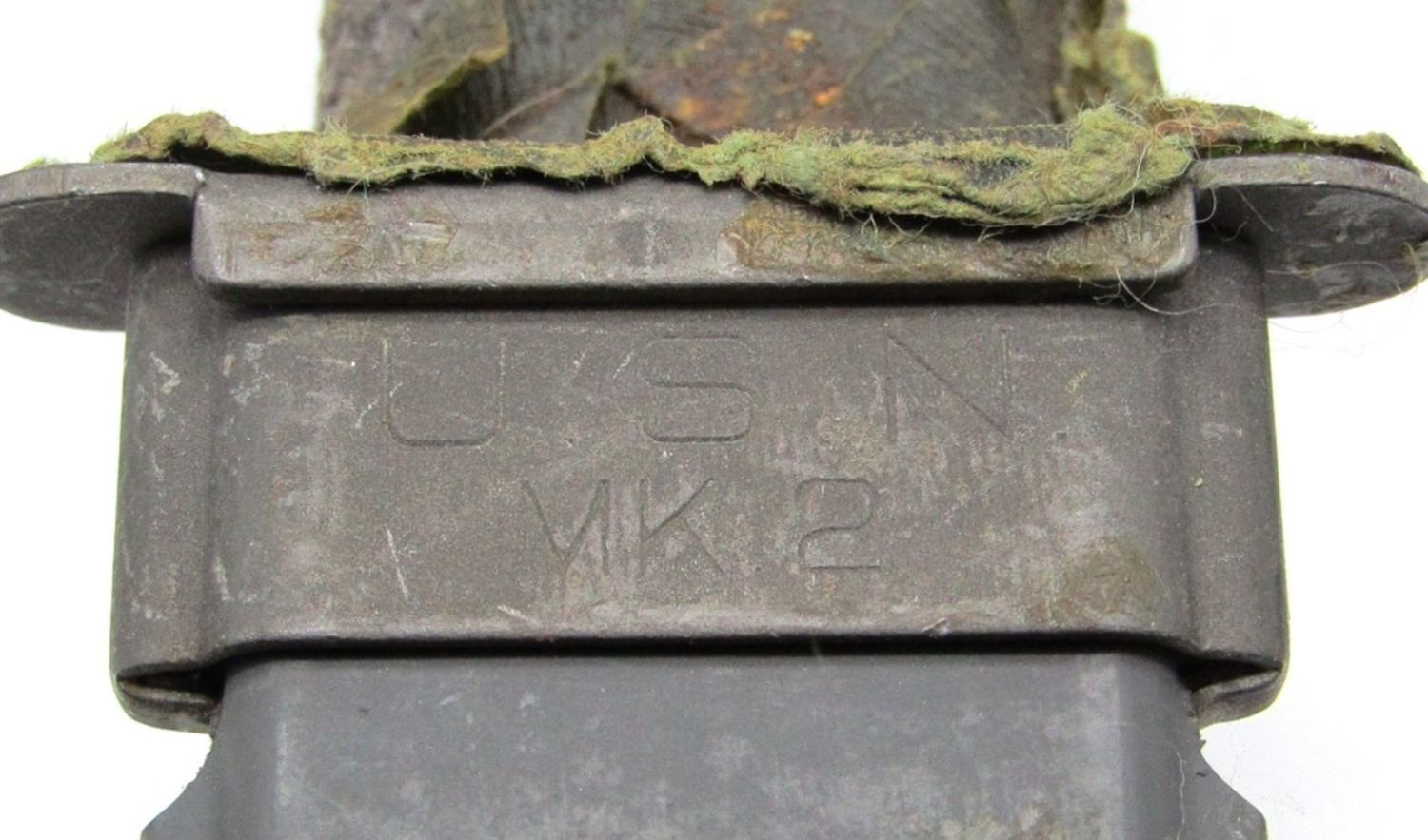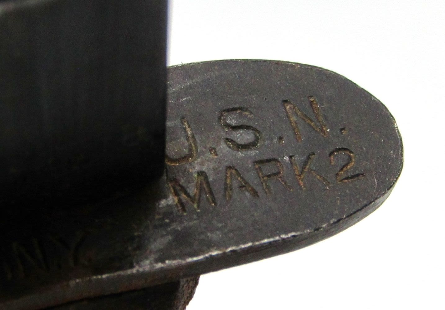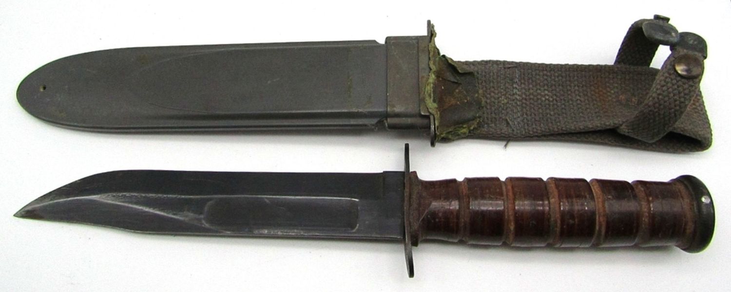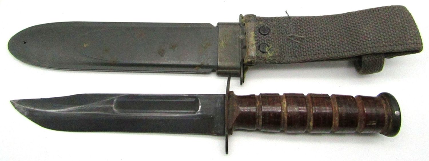 Blade Marked “U.S.N. Mark 2 Camillus NY”, Scabbard Marked “U.S.N.MK 2, Nord – 6581 B.M. Co. VP”; 6.8″ Blade, 13.3″ Overall Length; Used Condition.