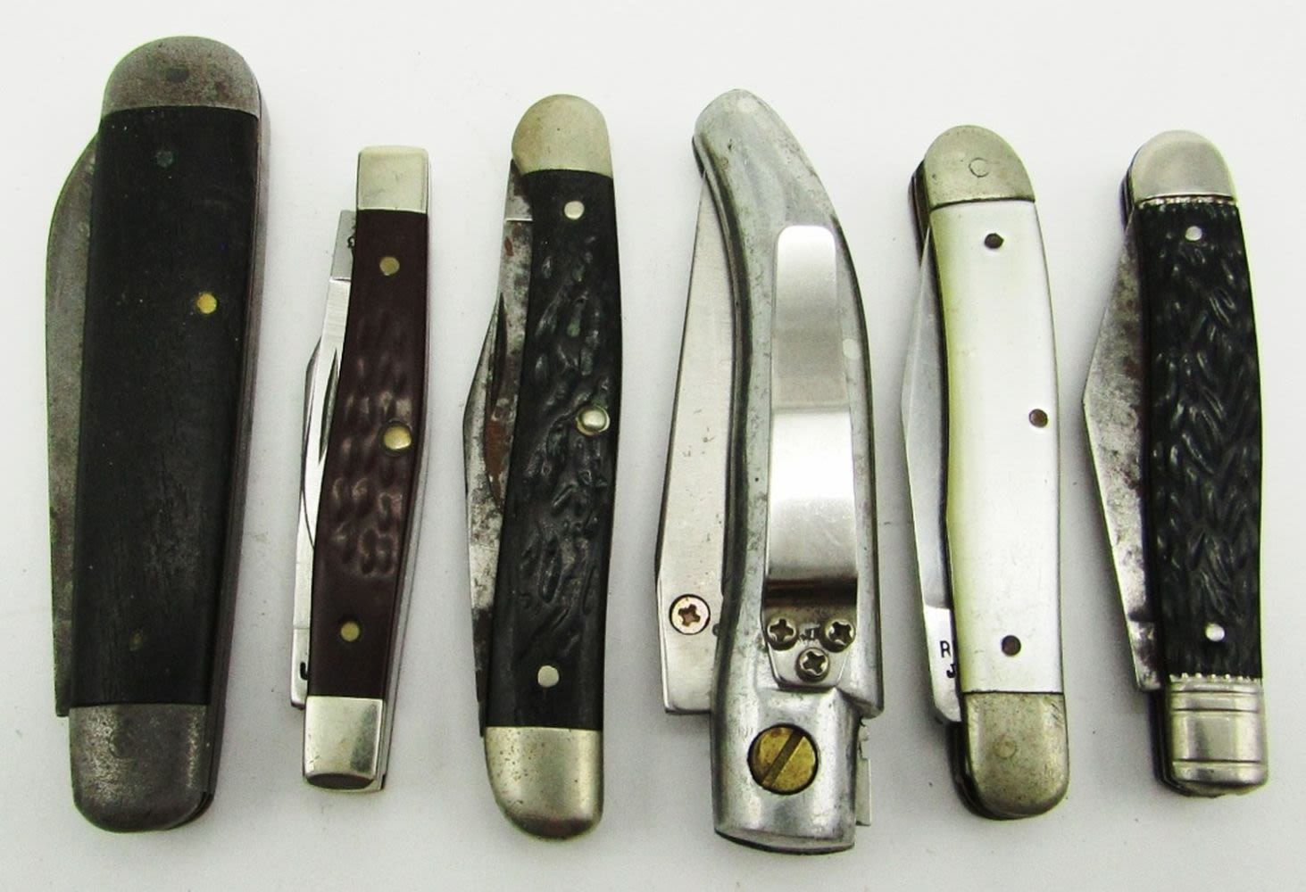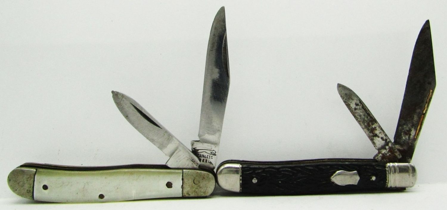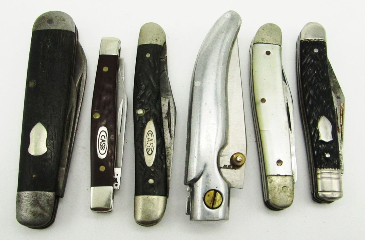 2-Blade Cattaraugus 22486, 2-Blade Regent Japan, 2-Blade CaseXX, 2-Blade CaseXX USA 6233 SS, 2-Blade Imperial Prov. RI, Single Blade MyL USA; Used Conditions.