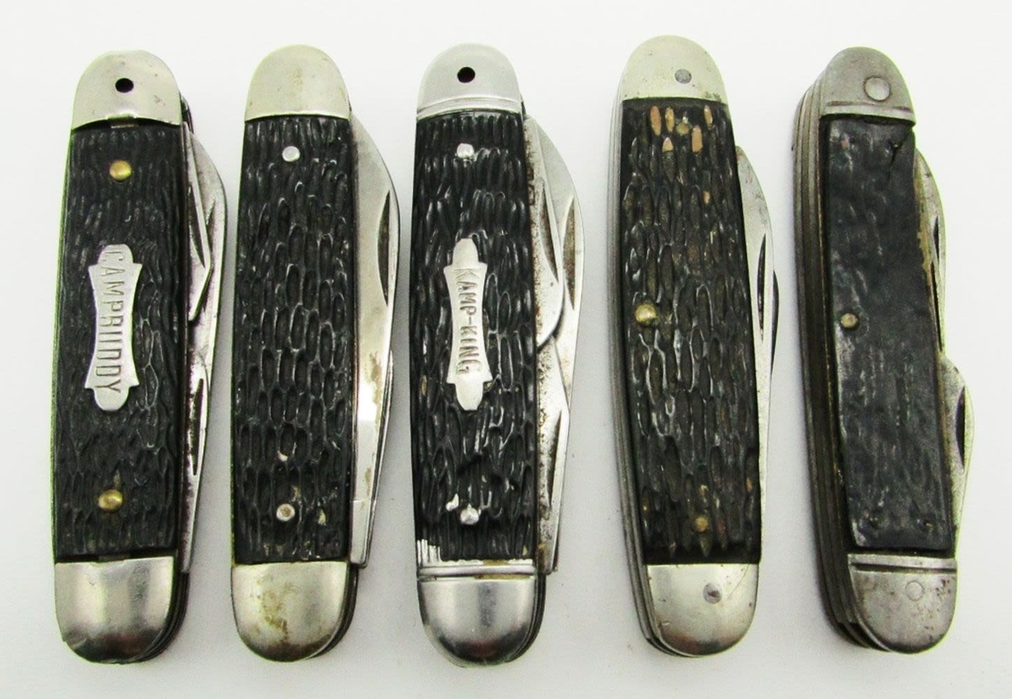 Multi-Tool/Blade Camp Buddy USA, Multi-Tool/Blade Hammer Brand USA Kamp-King, Unmarked Multi-Tool/Blades, 3-Blade Pal Cutlery Co. Made In USA, 4-Blade Camillus New York USA; Used Conditions.