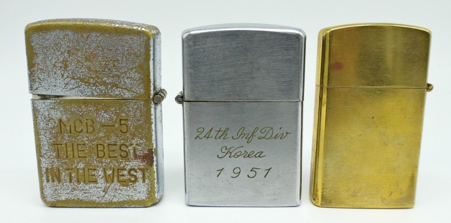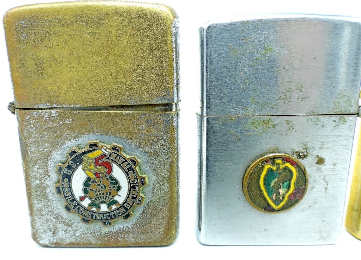 1- UNFIRED USN LOGO, 1- USED CONDITION, ENGRAVED “24TH INF DIV KOREA 1952″ ON THE BACK, 1- UNFIRED ” MOBILE CONSTRUCTION BATTALION NAVAL” ENGRAVED ON THE BACK MCB-5 THE BEST IN THE WEST