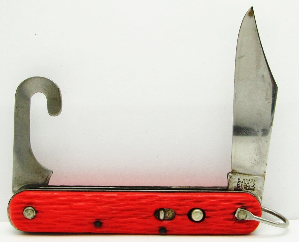Schrade Walden NY USA With Paratrooper Switch Hook Knife, Black Beauty Made In Italy Folding Stilleto Blade, 2-Blade 2-Sided Challenge Cut Co. Bridgeport; Used Conditions.