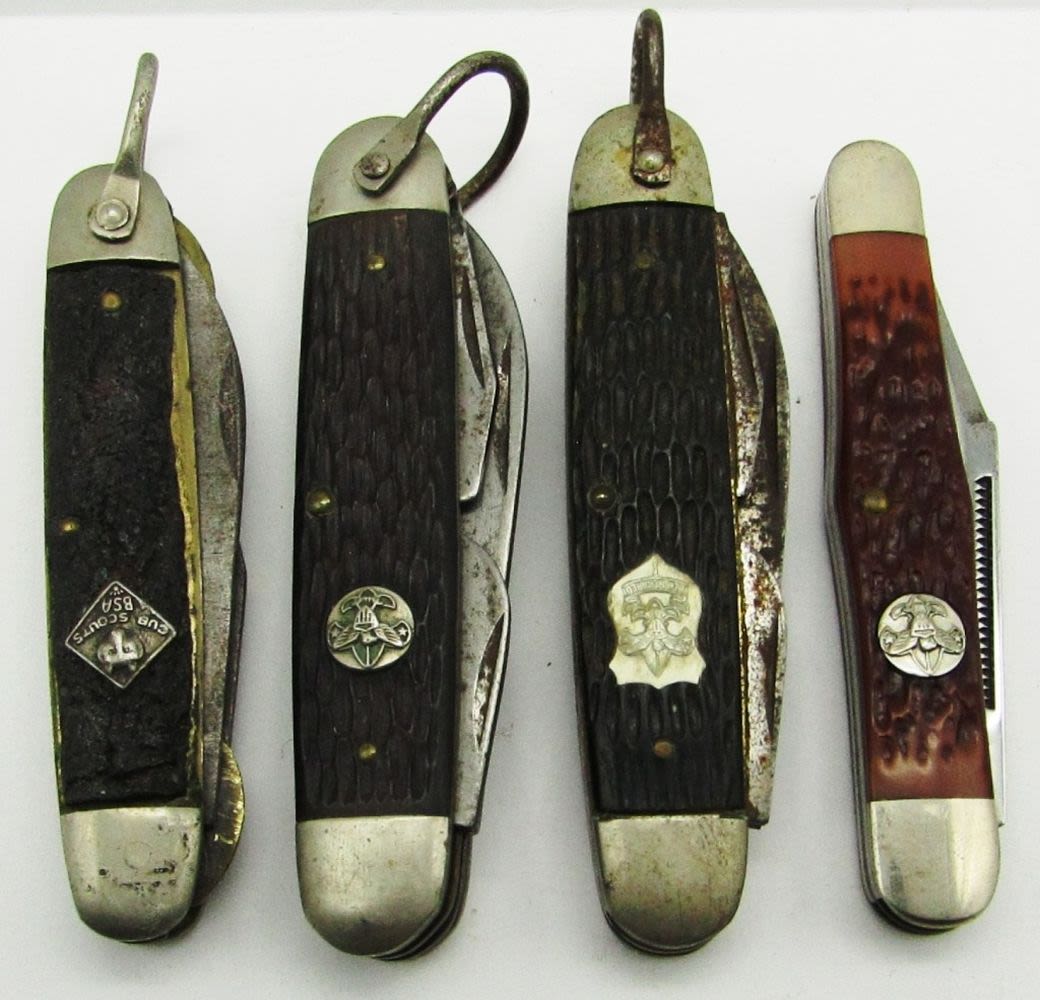 Imperial Cub Scouts BSA, Imperial Be Prepared, Ulster USA Scouts Symbol, 3-Blade Camillus NY Whittler Scouts Symbol; Like New/Used Conditions.
