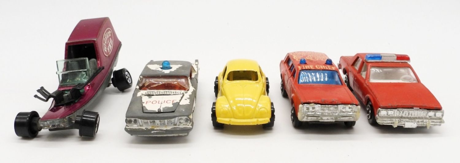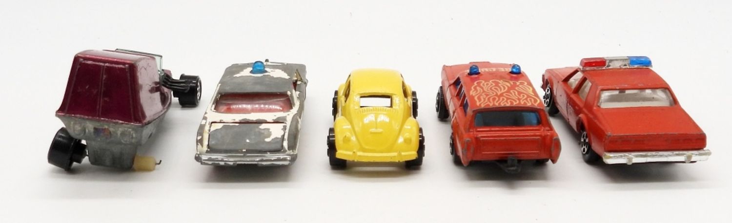 JOHNNY LIGHTNING MOVIN VAN, PLAY ART YELLOW BEETLE, ROAD MASTER FLYERS POLICE, GATA PLAY ART FIRE DEPT, GATA PLAY ART FIRE CHIEF