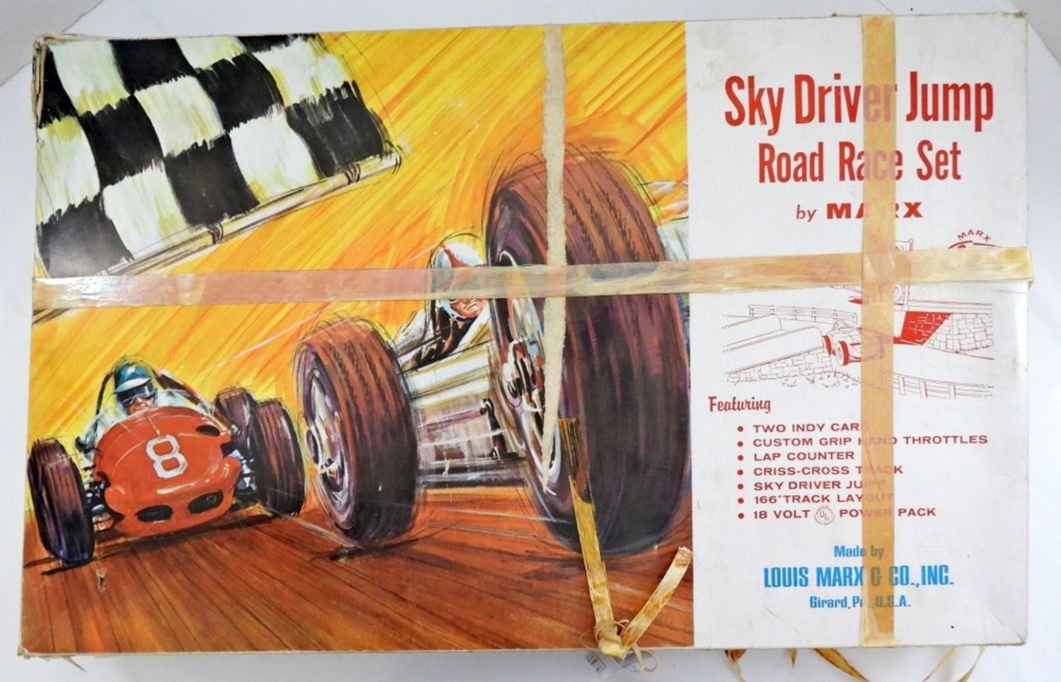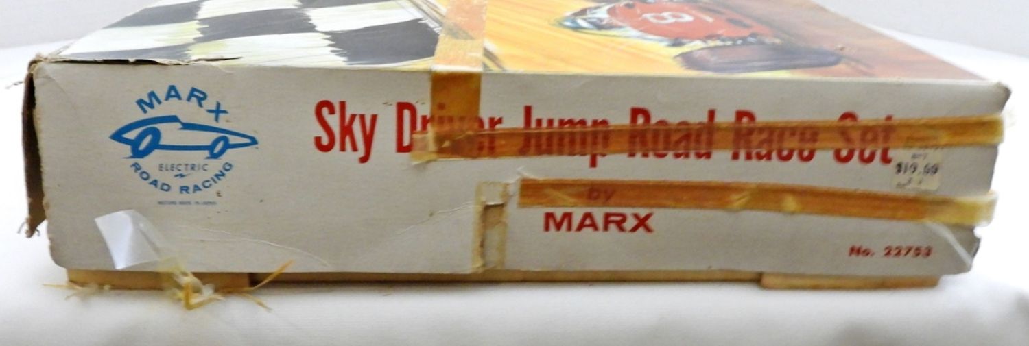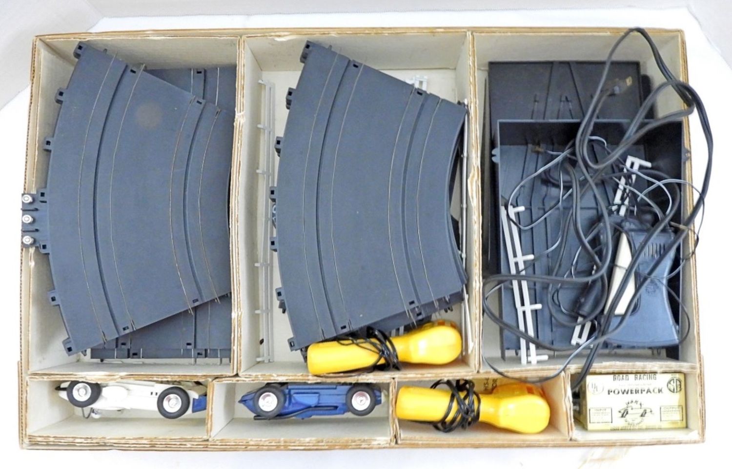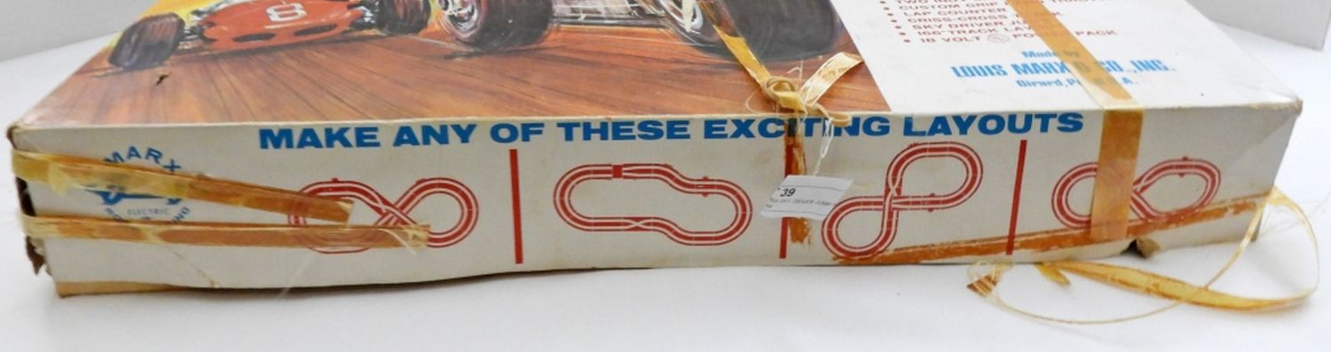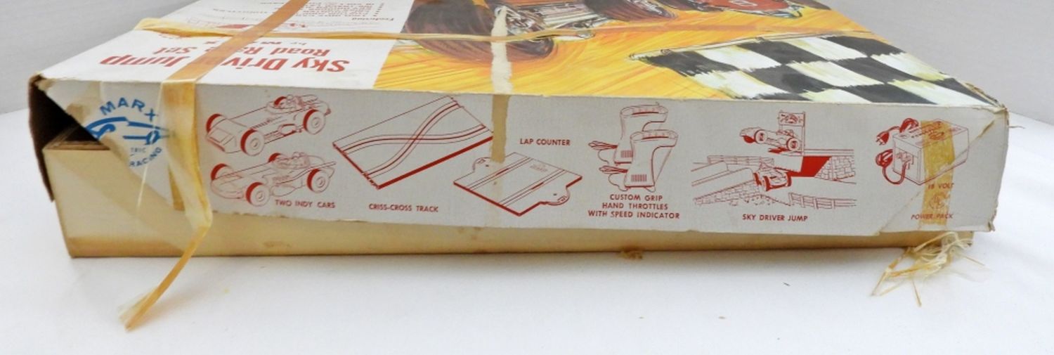 LOOKS TO BE COMPLETE BUT NOT BEEN VERIFIED, THE BOX LOOKS BANGED UP A BIT WITH NORMAL WEAR,HEAD IS MISSING FROM ONE CAR FOR REPAIR