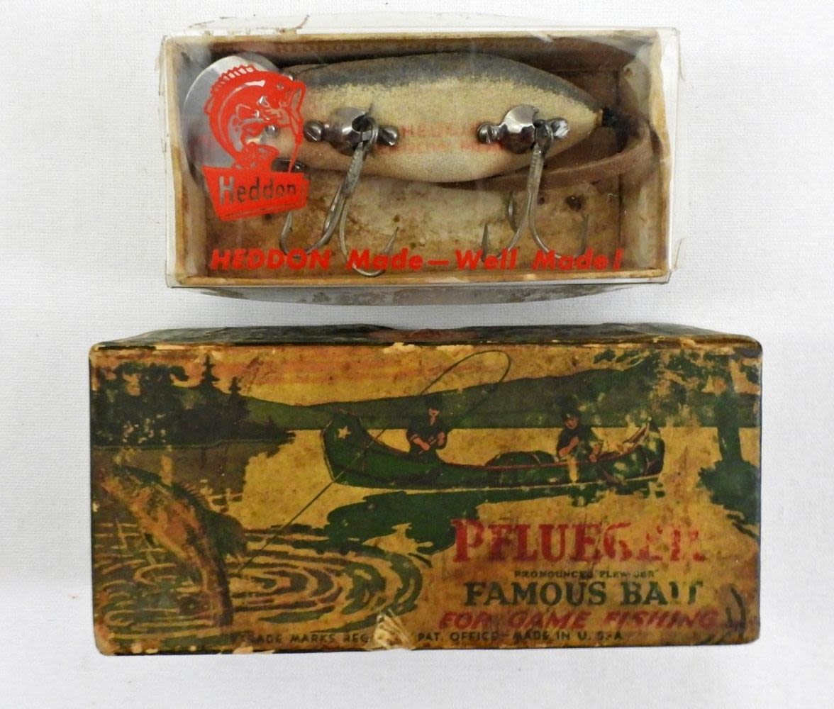 HEDDON MOUSE LURE 3″ LONG, PFLUEGER NEAR 4″LONG, BOTH STILL HAS THERE BOXES