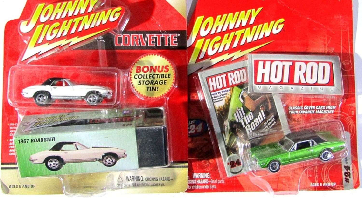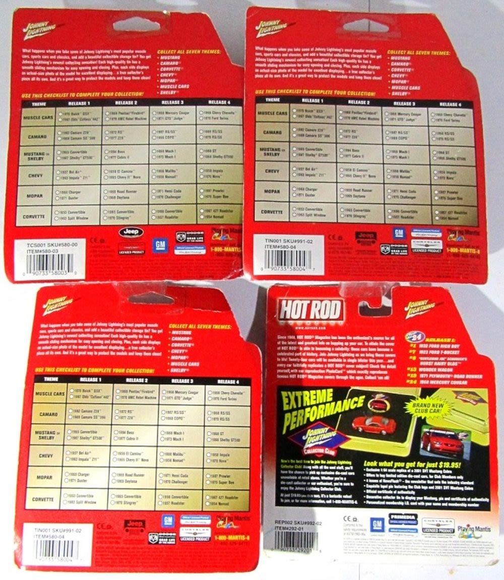 Hot Rod Magazine #24 1968 Mercury Cougar, #38 1967 Roadster Corvette, #46 1968 RS/SS Camaro, #26 1957 Roadster Corvette; All New In Original Packaging!