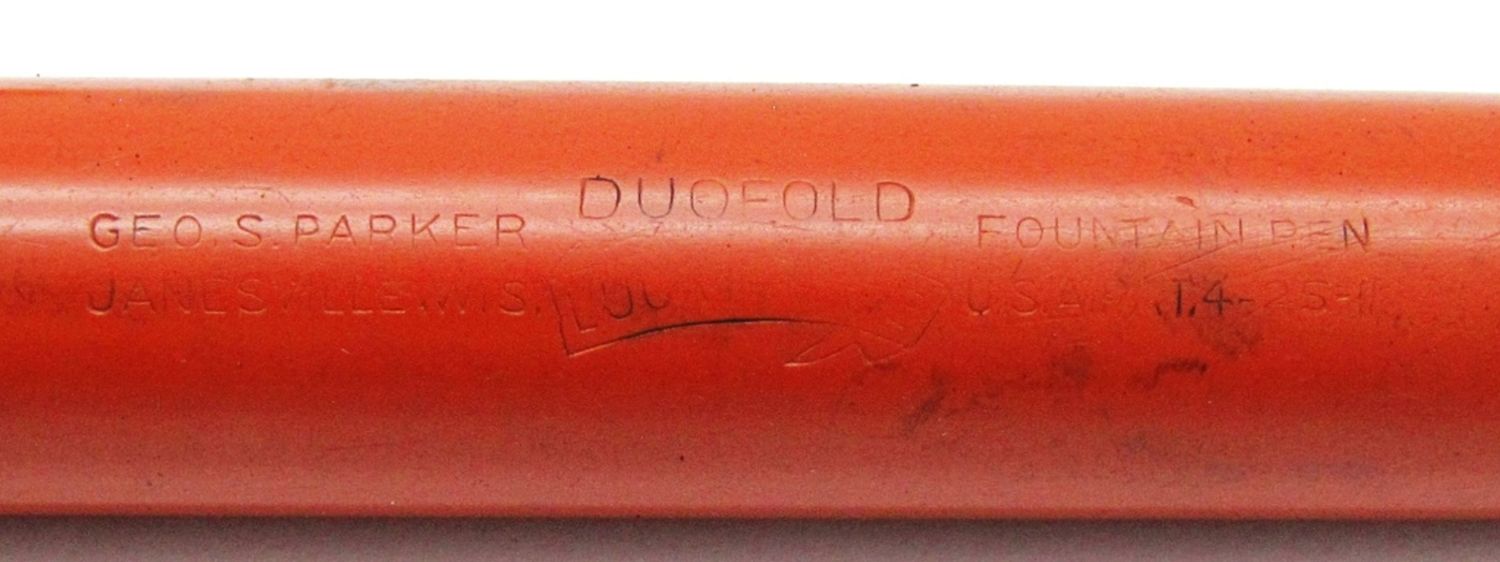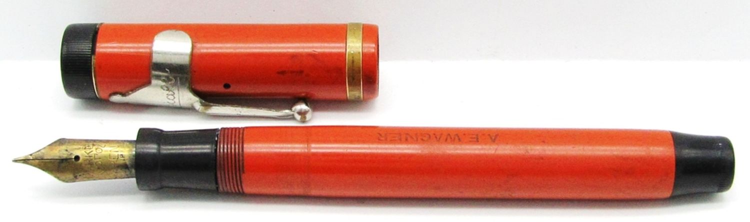 “A. E. Wagner” Lucky Curve Janesville, Wis. USA PAT. 4-25-11; “Rexall” Cap Pen Clip, “Parker Duofold Pen P” Fountain Nib; Used Condition.