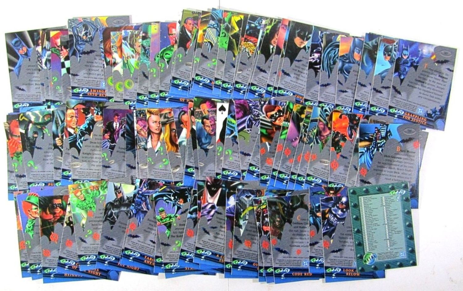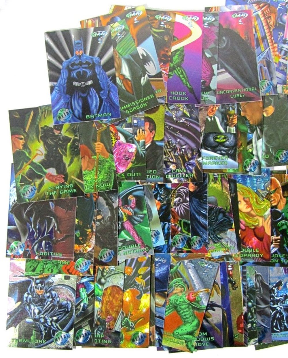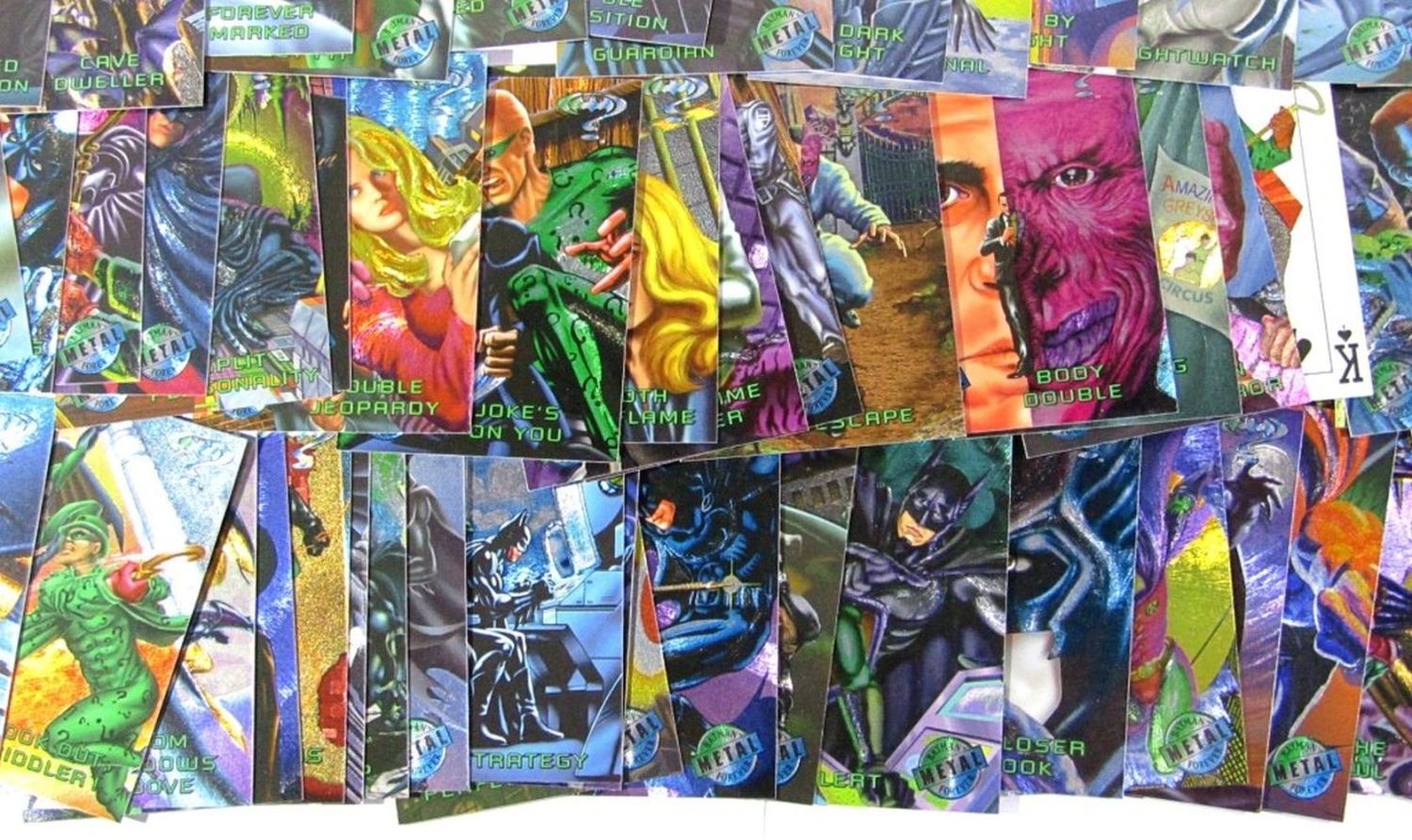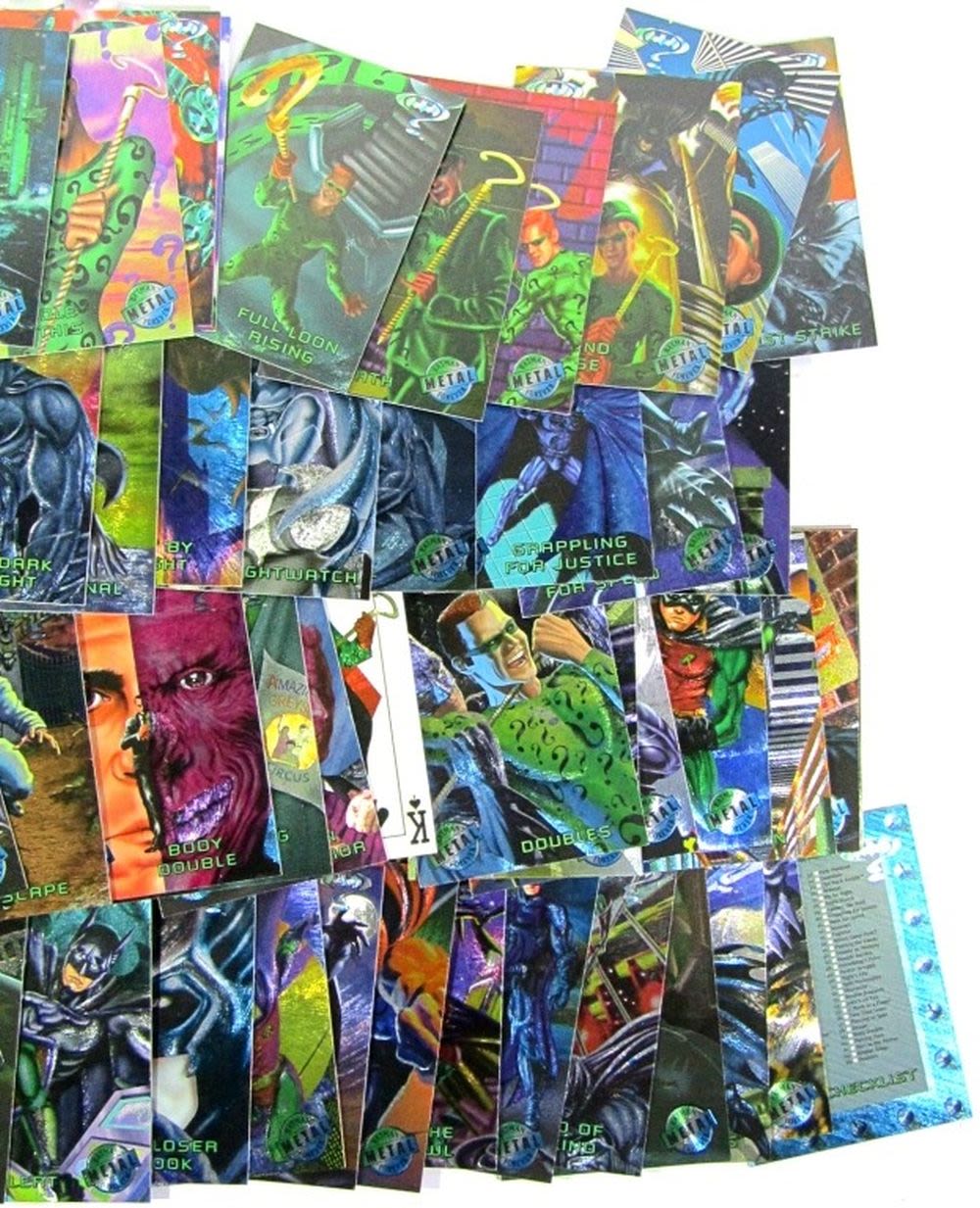 1994 Skybox Batman Saga of the Dark Knight Complete Trading Card Set (100); 1995 Fleer Batman Forever Metal Complete Silver Flashers Card Set Collection (100); Good Conditions.