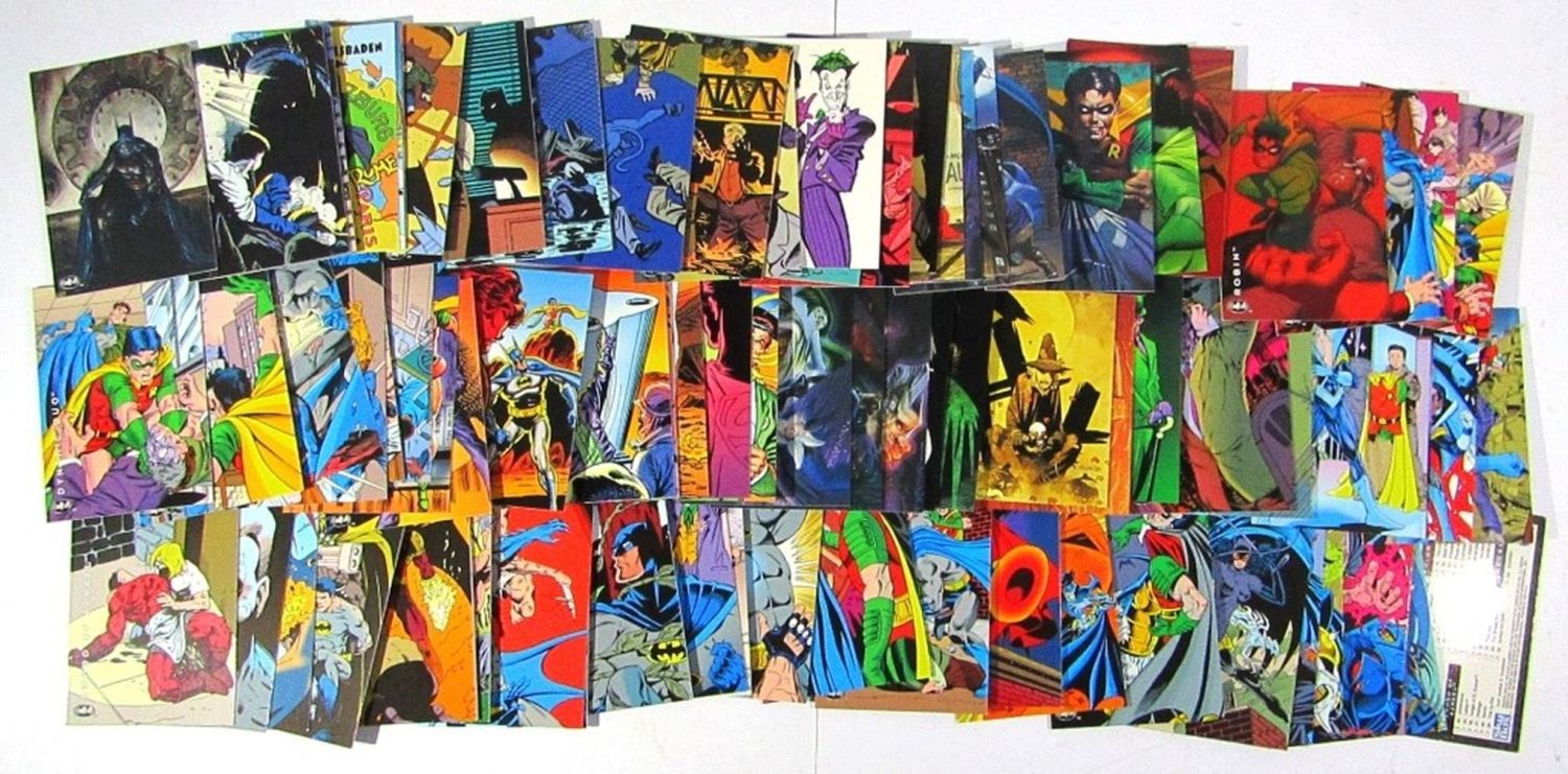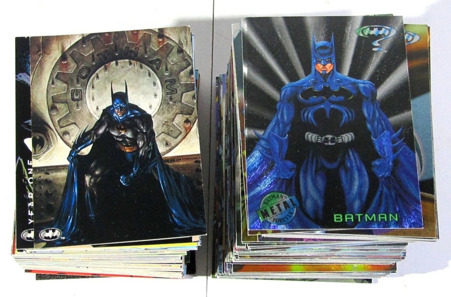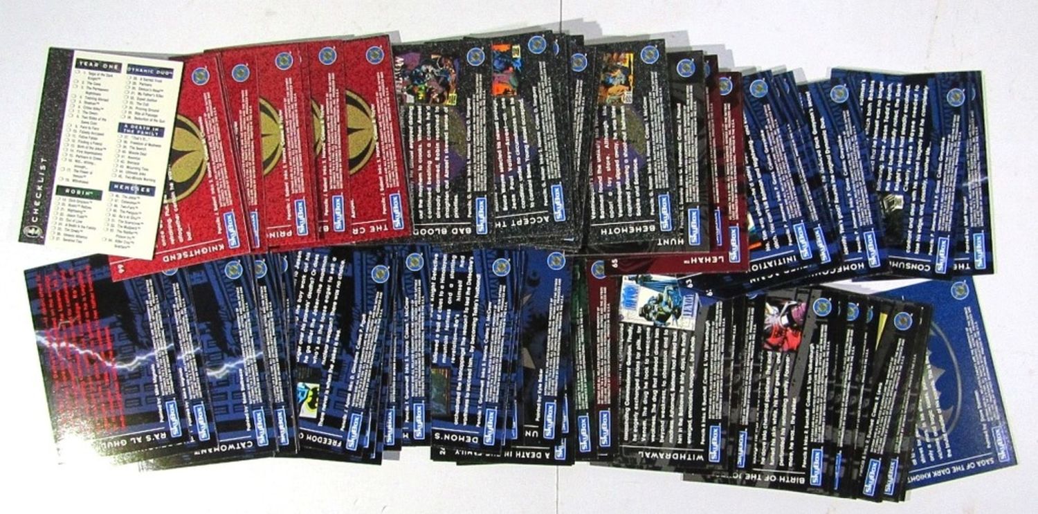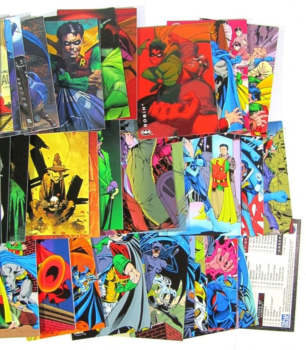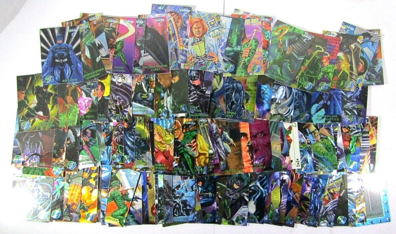 1994 Skybox Batman Saga of the Dark Knight Complete Trading Card Set (100); 1995 Fleer Batman Forever Metal Complete Silver Flashers Card Set Collection (100); Good Conditions.